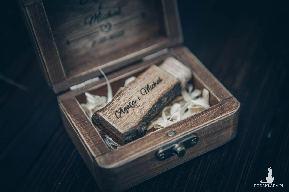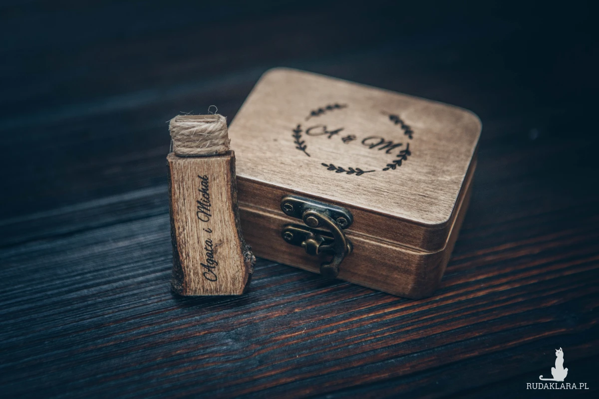 Zwracamy Państwa uwagę na fakt, że przetarcia oraz odcień pudełka i pendrive mogą minimalnie różnić się od prezentowanego na zdjęciach, ze względu na ręczne malowanie i szlifowanie, które są stosowane w procesie produkcji. Należy pamiętać, że każdy projekt jest traktowany indywidualnie, co może wpływać na finalny wygląd produktu.