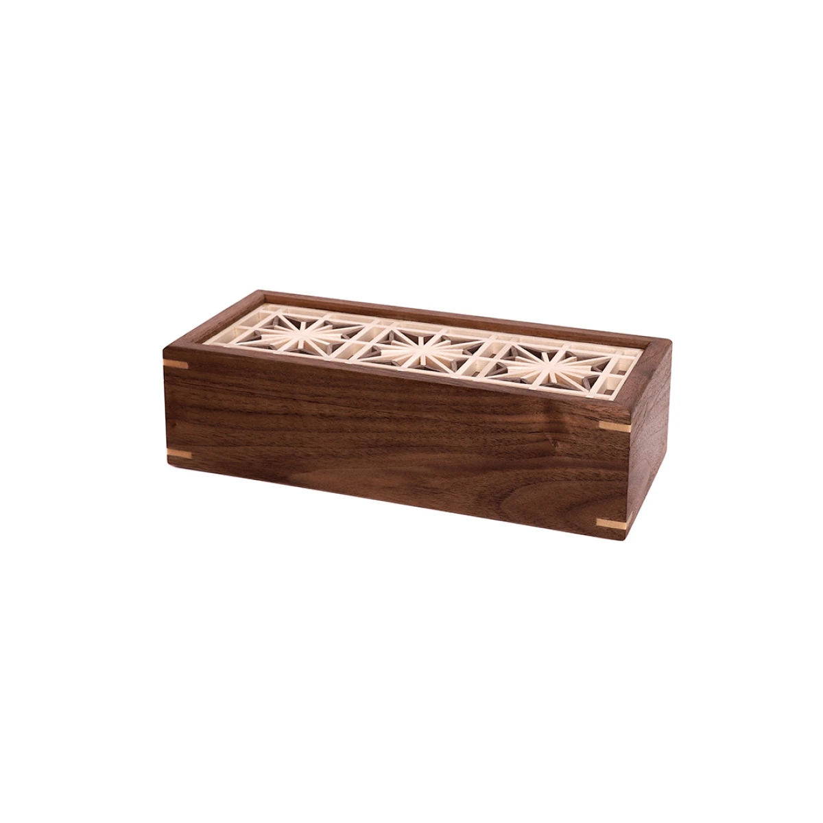 Szkatułka na biżuterię drewniana z wzorem Kumiko Asa no ha, prostokątna