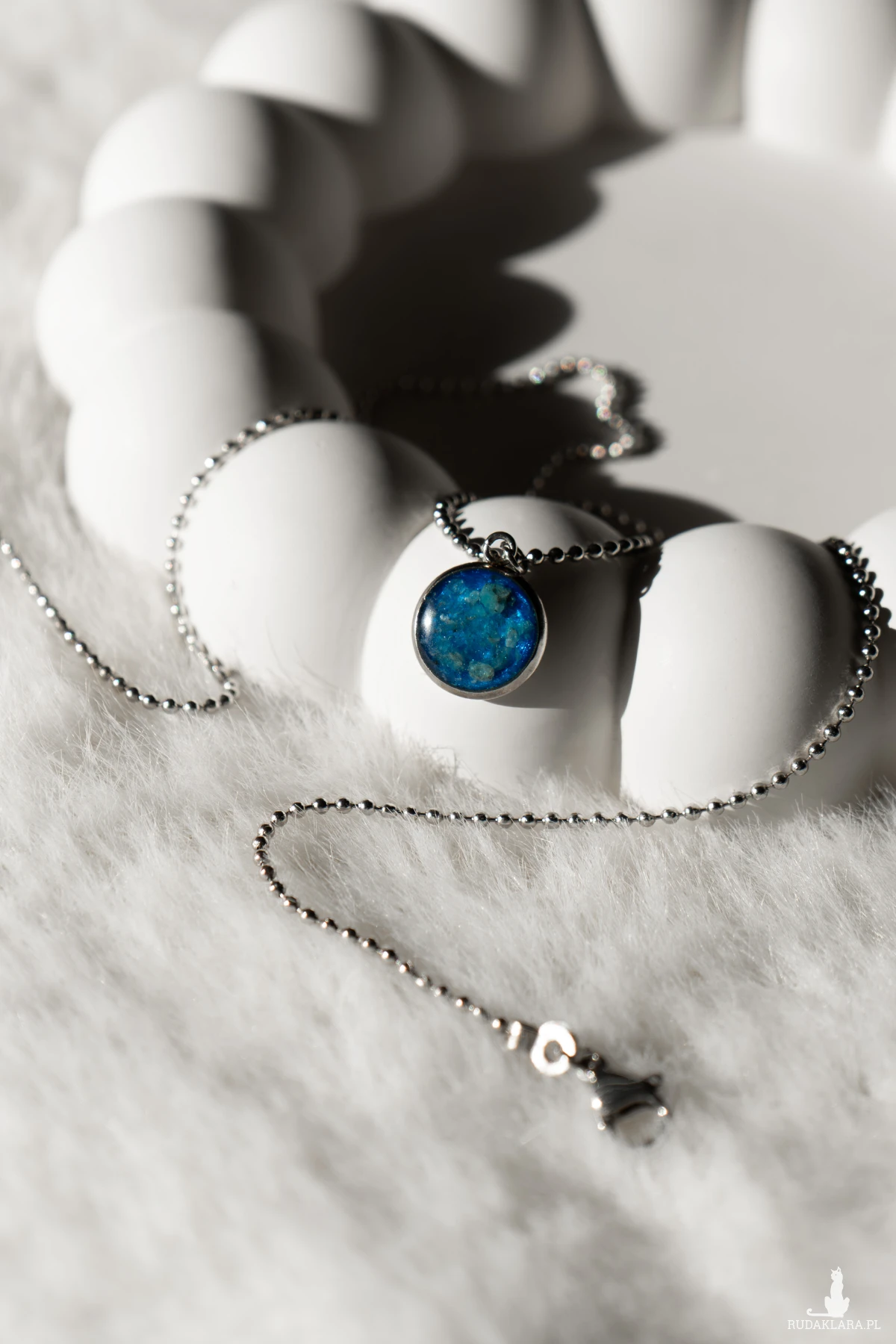 Piękna, elegancka biżuteria z apatytem, który został zatopiony w krystalicznej żywicy. Wyglada jak kawałek nieba.