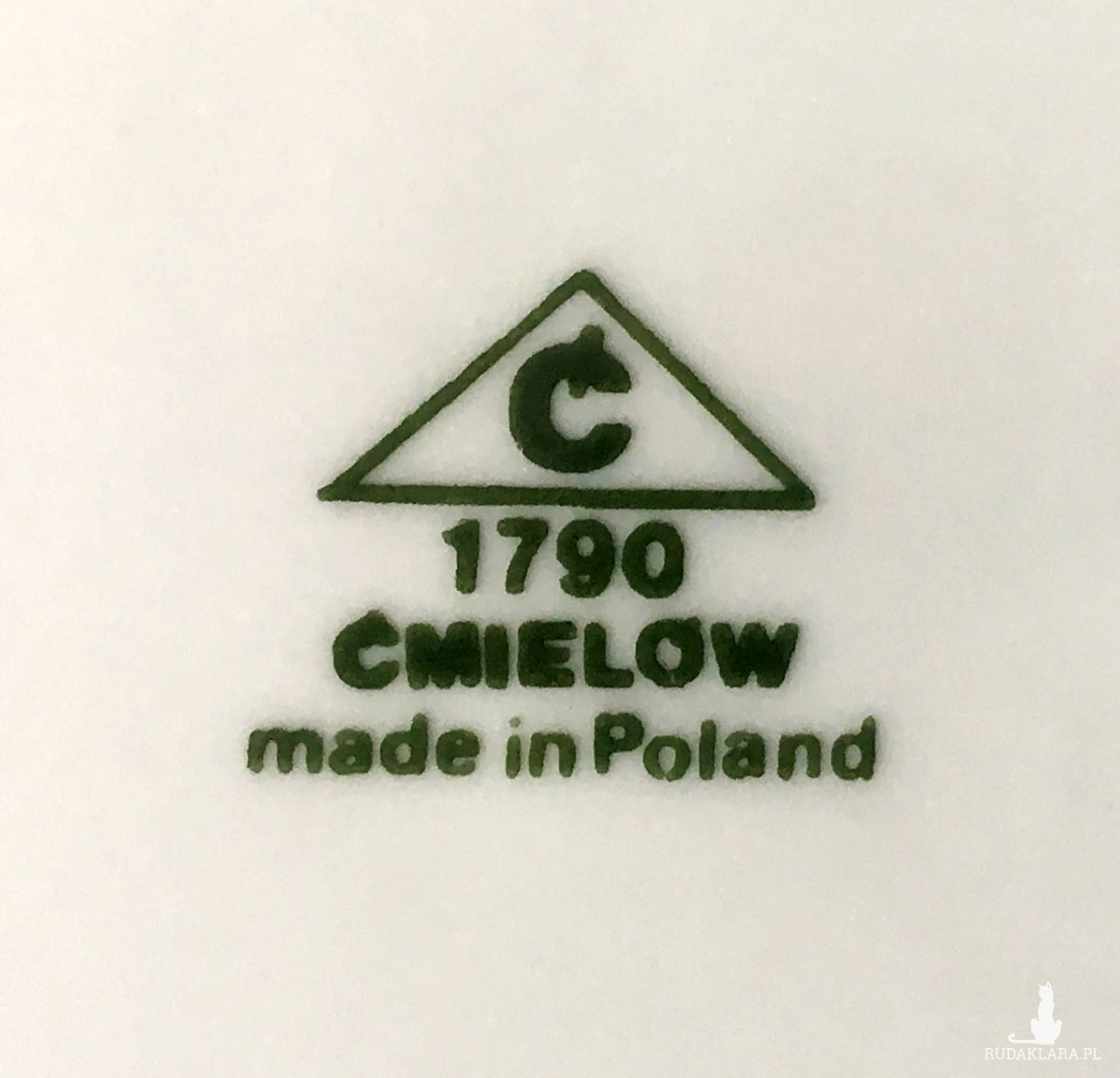 Bardzo stary komplet talerzyków deserowych do ciasta. Komplet składa się z 6 talerzyków - śr.- 17 cm. i dużego talerza - śr. - 26 cm. Talerze są z porcelany z fabryki w Ćmielowie z lat 50- tych XX w. Z tyłu jest sygnatura.