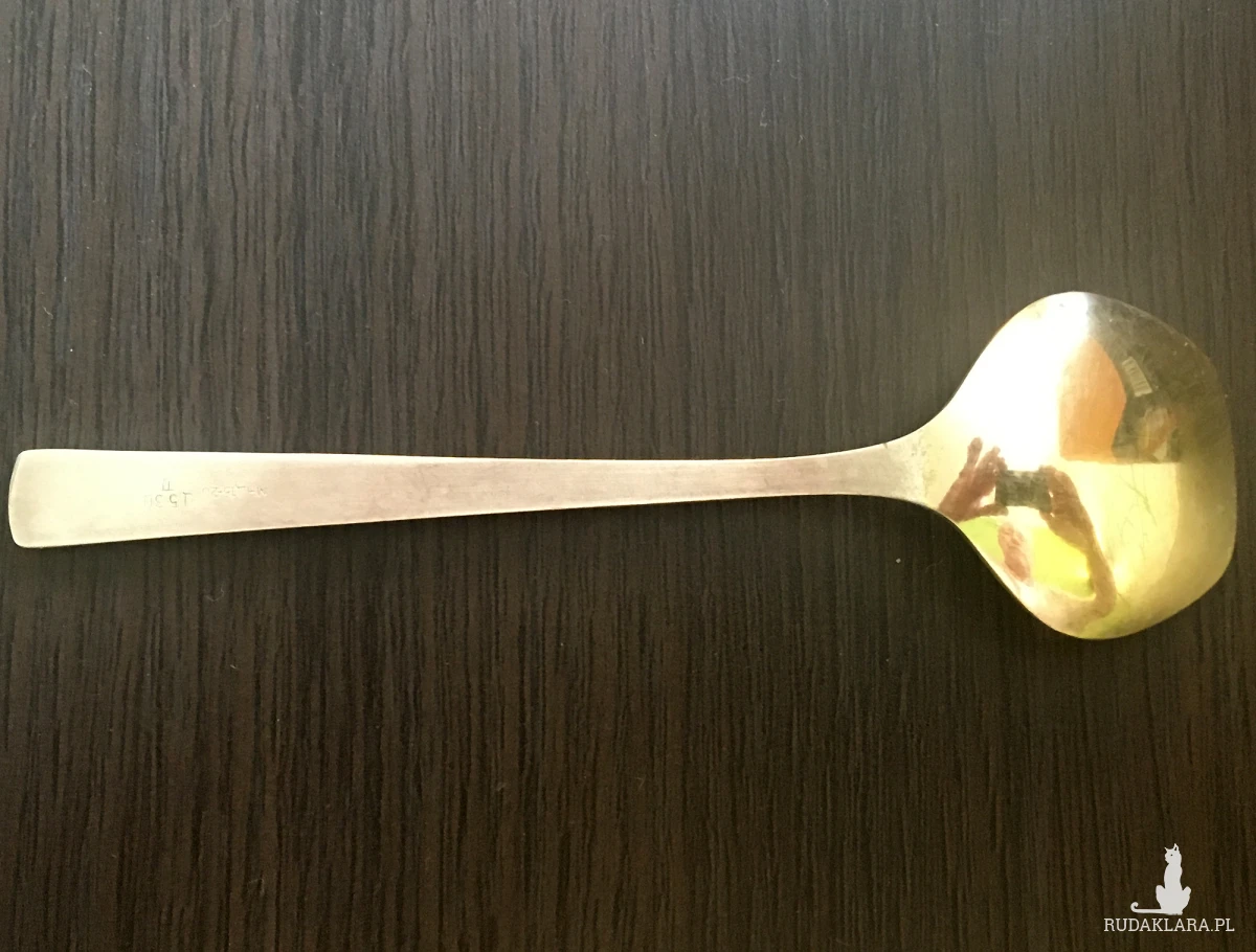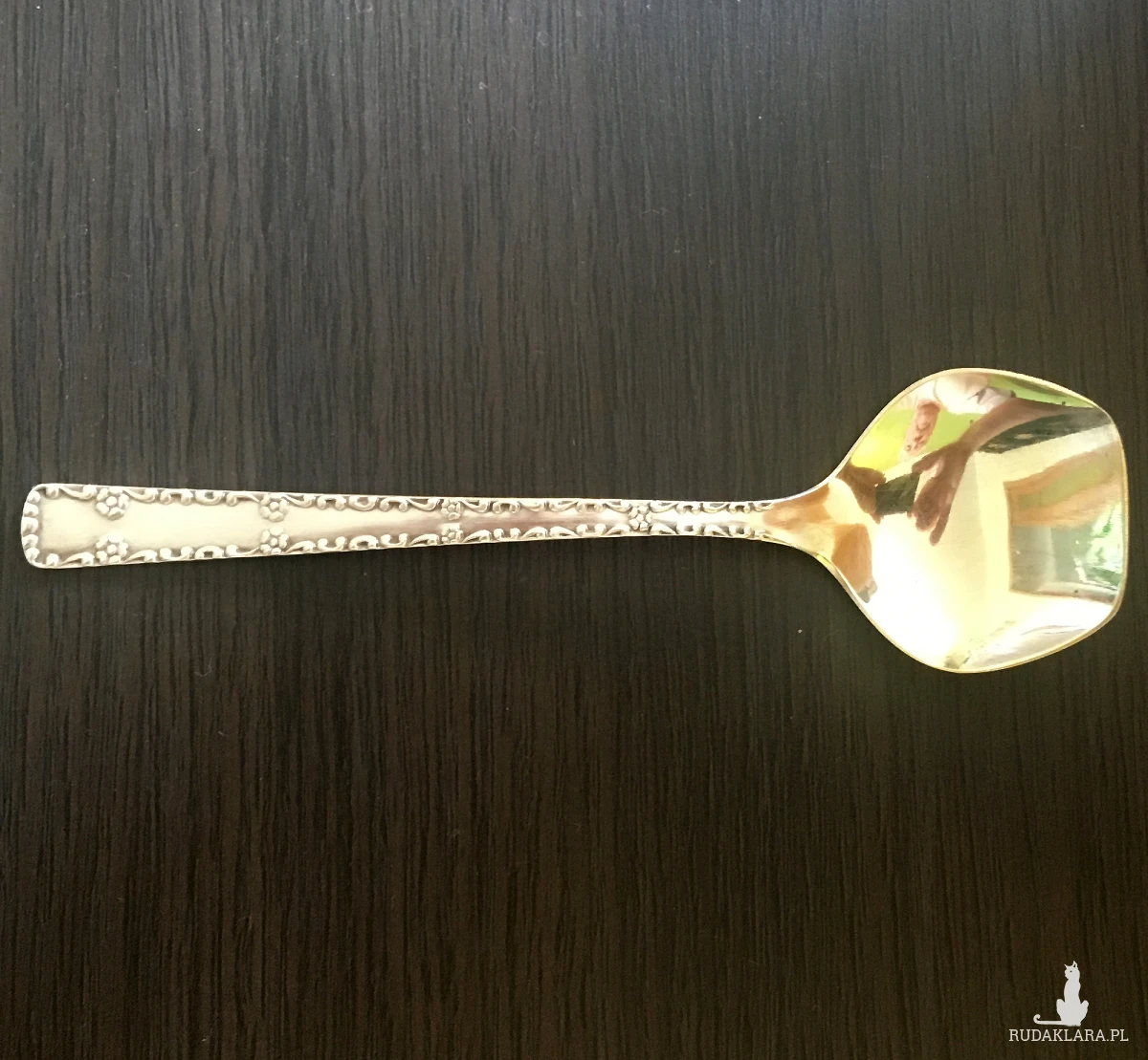 Stara, posrebrzana łyżeczka do cukiernicy. Łyżeczka pochodzi z Rosji z lat 50.