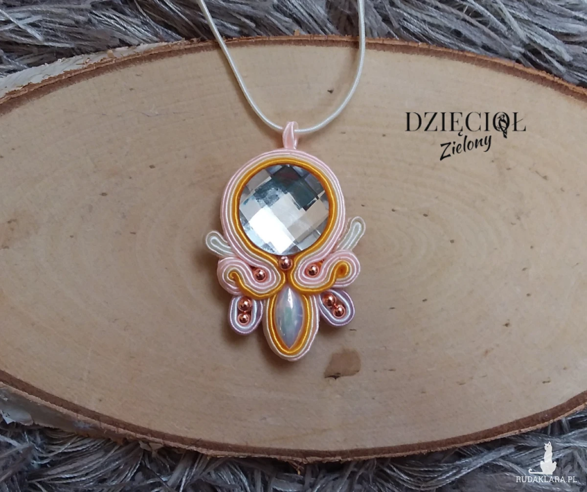 Ręcznie szyty, pastelowy wisiorek wykonany w technice sutasz