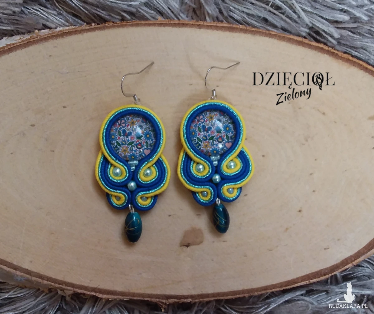 Ręcznie szyte kolczyki wykonane techniką sutasz