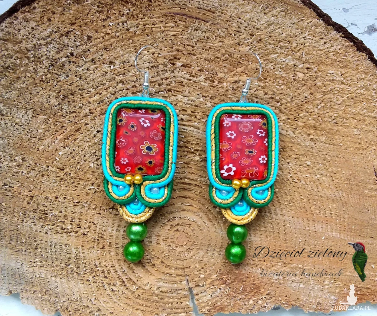 Ręcznie szyte kolczyki wykonane w technice sutasz