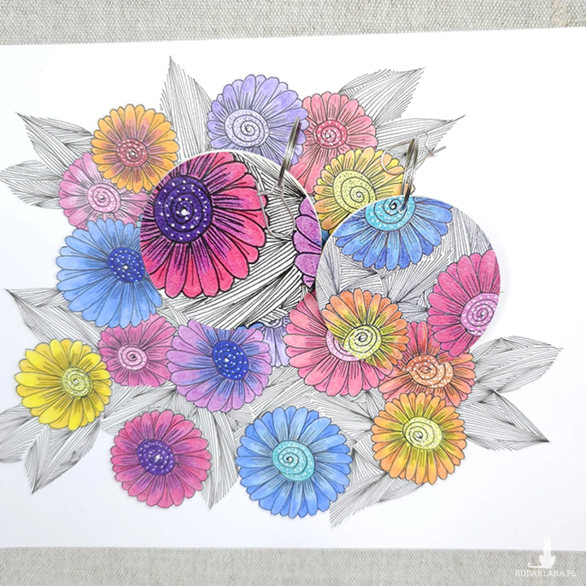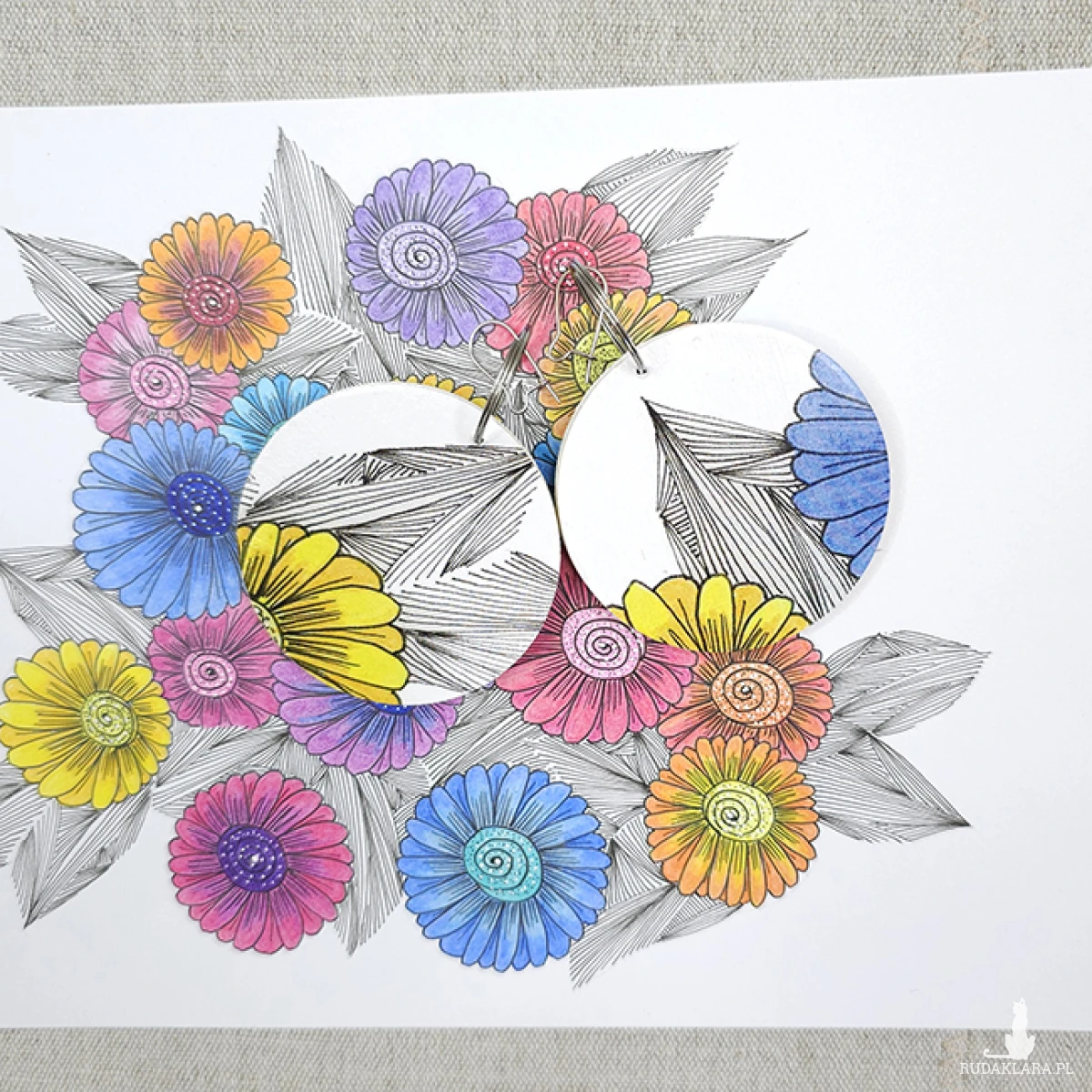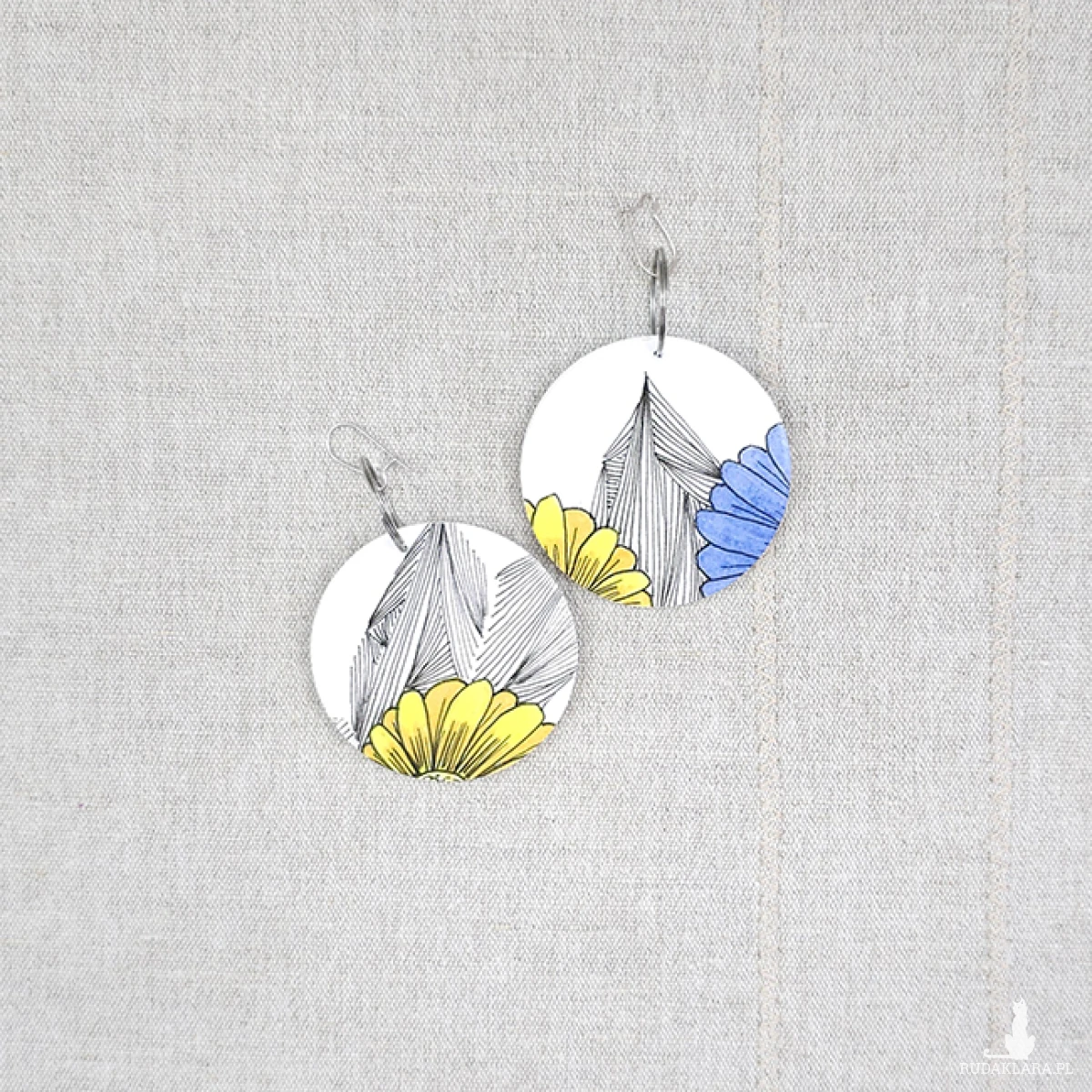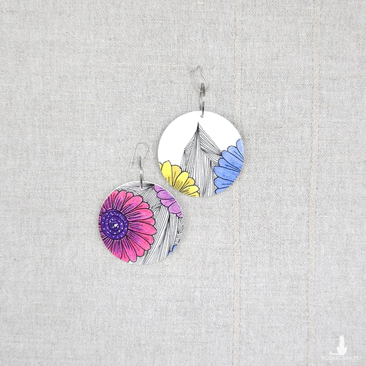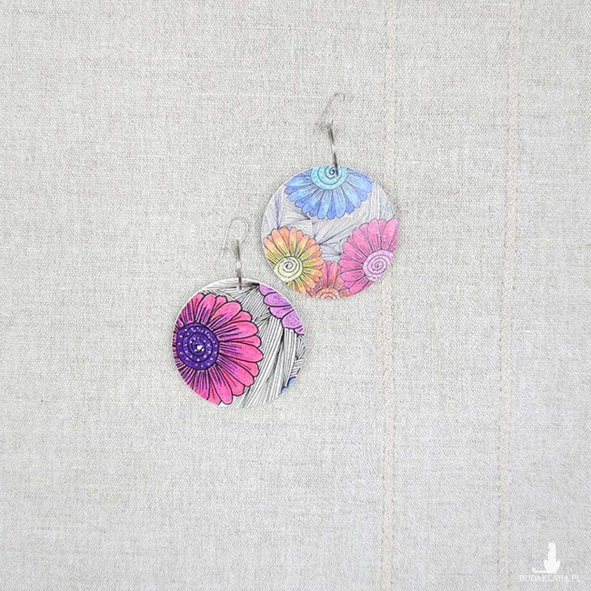 6747 kolorowe, niepowtarzalne, duże, dwustronne, kwiatowe kolczyki