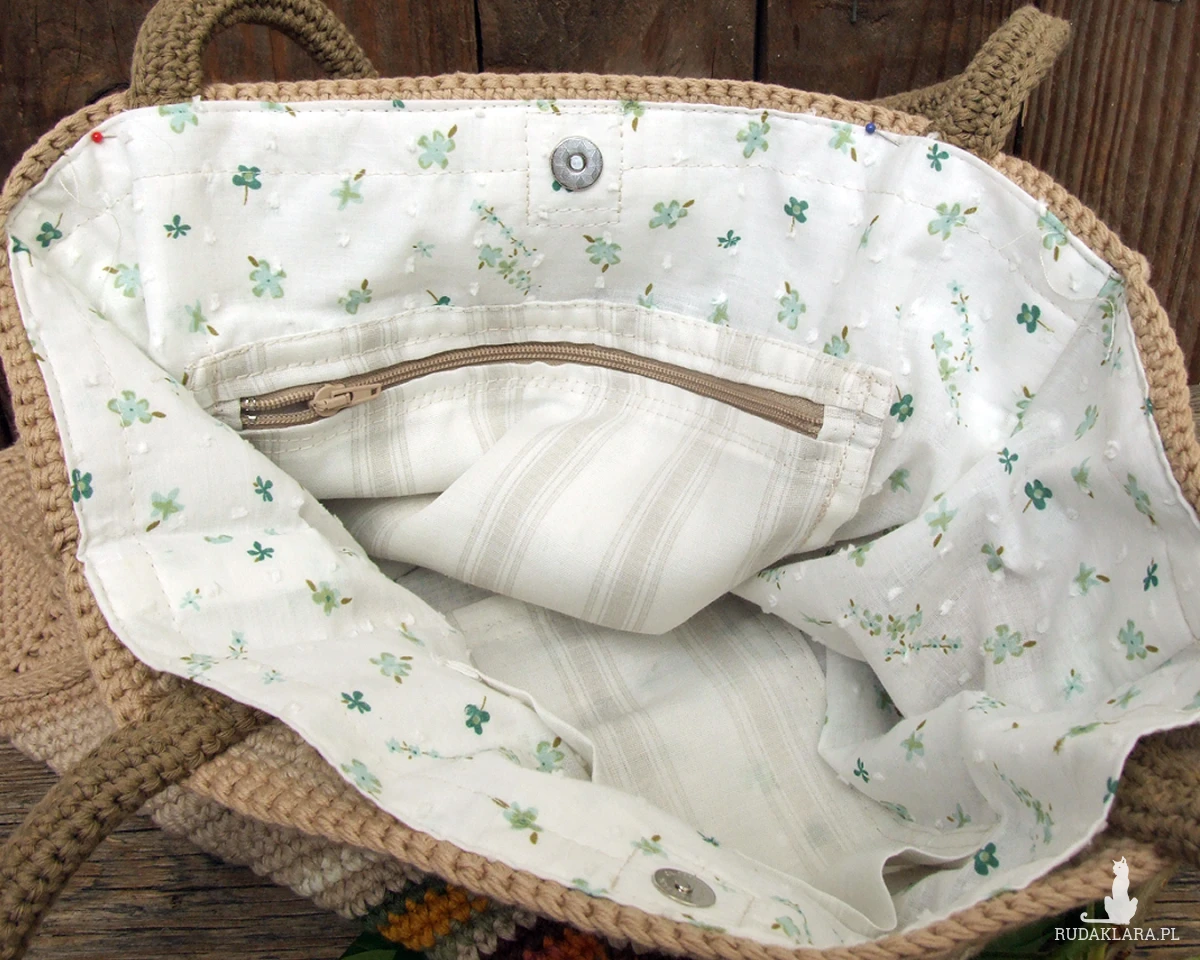 Okrągłe rączki są także wykonane ręcznie na szydełku, dodatkowo dla wzmocnienia wypełnione bawełnianym sznurkiem.