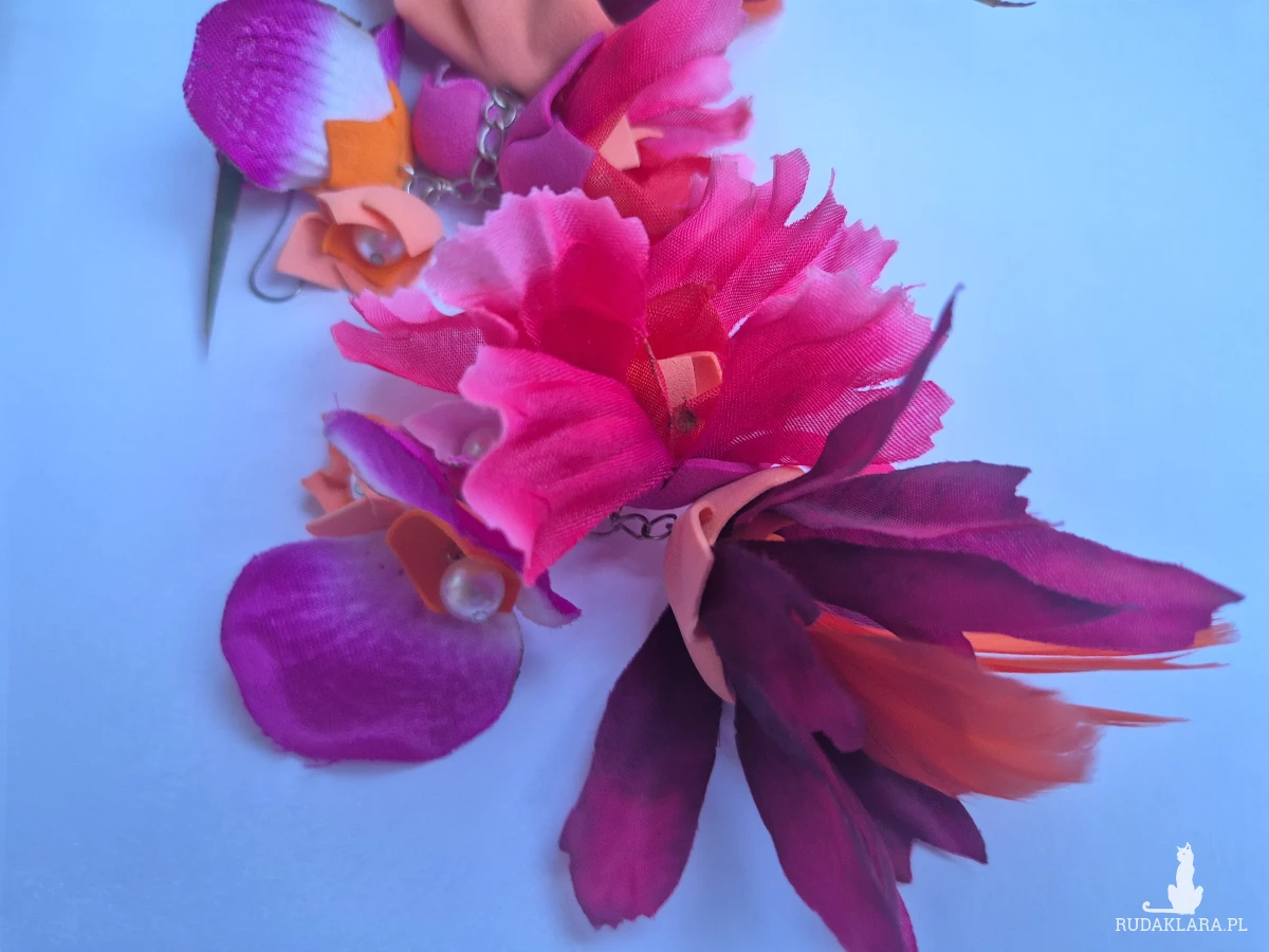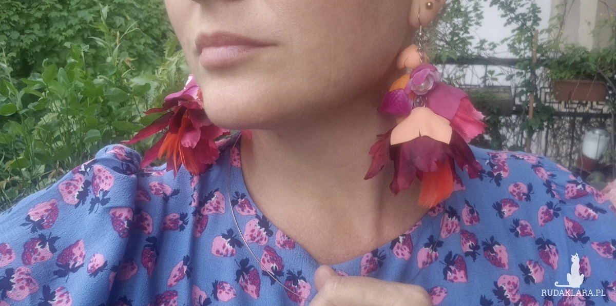 Kolczyki soczyste pomarańczowo-różowo-czerwone leciutkie i bujne polecam