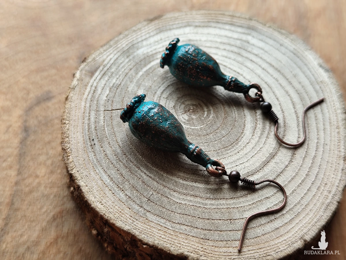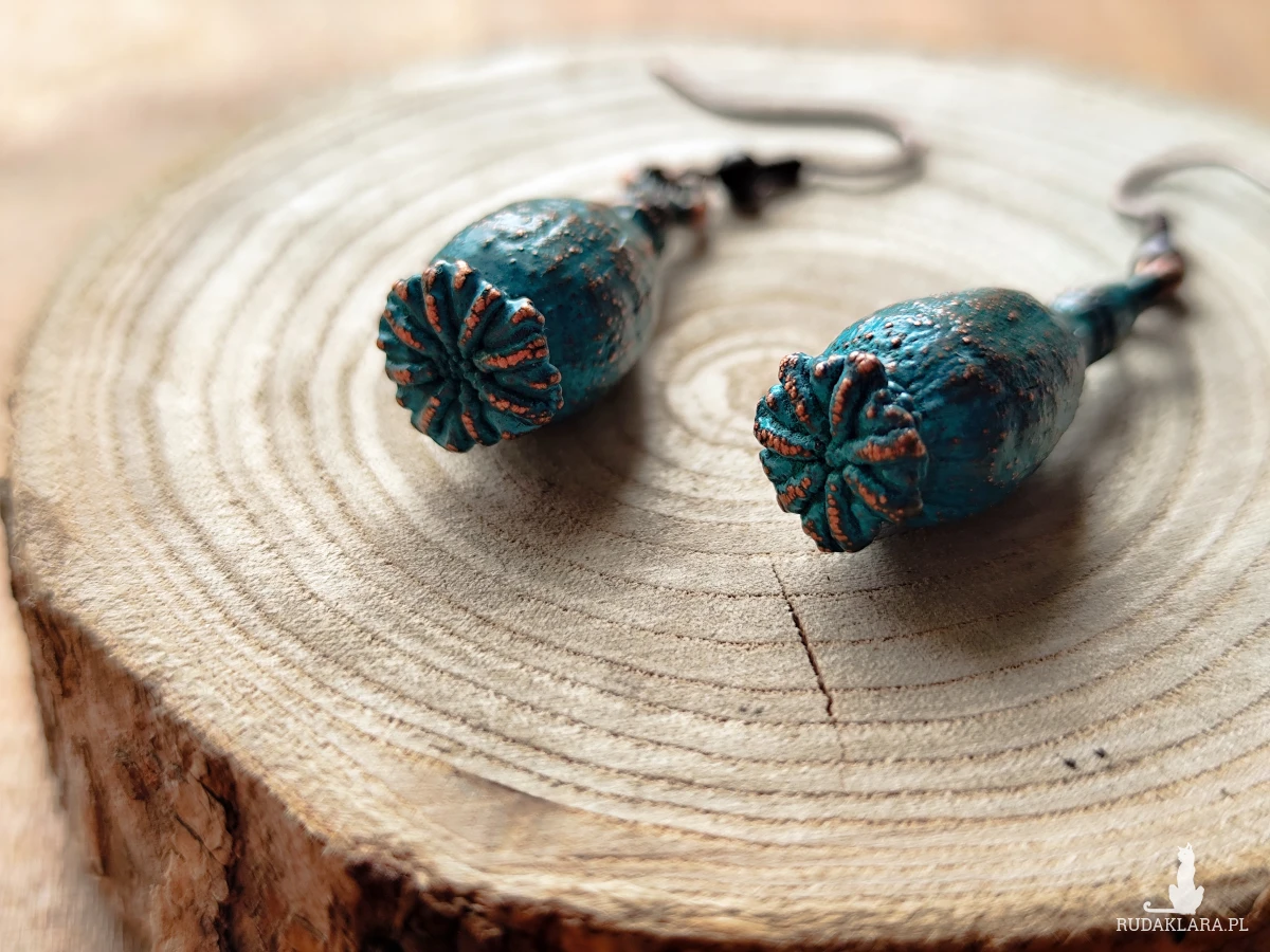 Prawdziwe Makówki zamknięte w miedzi. Muśnięte patyną, zabezpieczone lakierem.