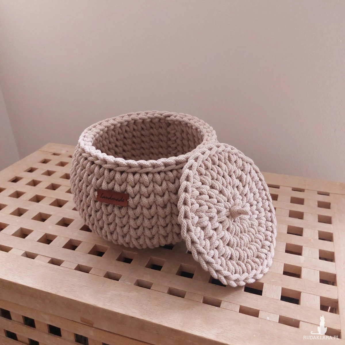 Na sprzedaż oferuję koszyk z pokrywką ze sznurka bawełnianego w kolorze beżowym ( istnieje możliwość wykonania w innym kolorze).