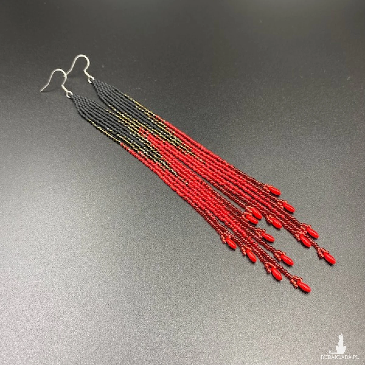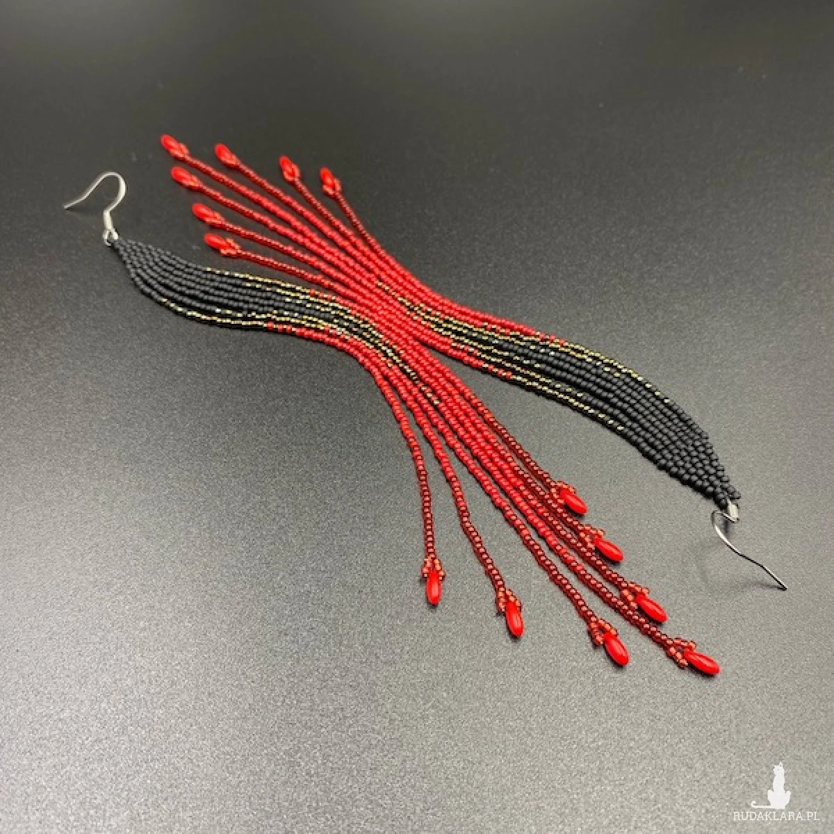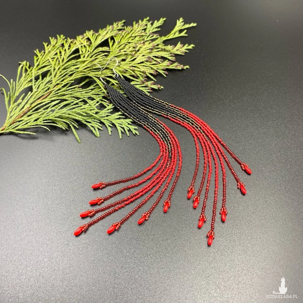 Kolory kolczyków : czarny, metaliczny brąz, odcienie czerwieni.