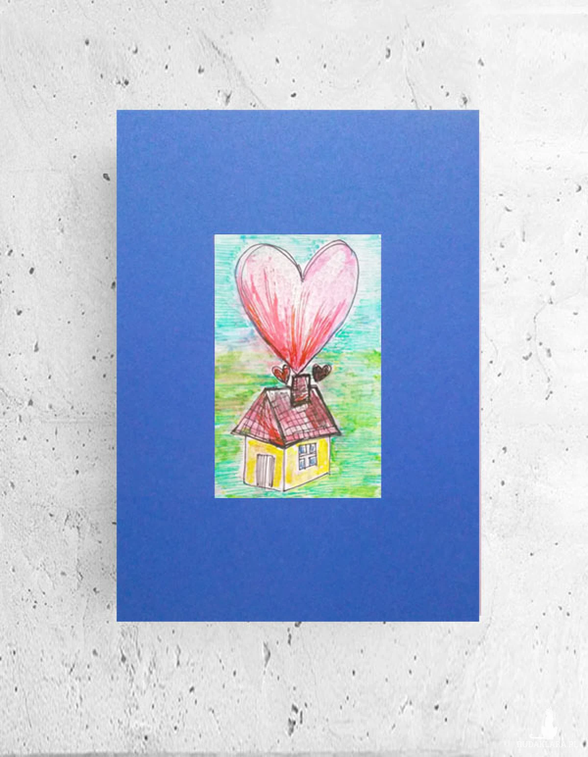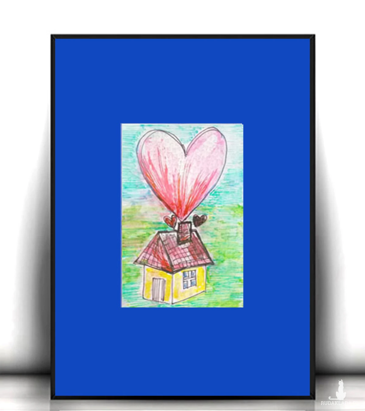 Nowy, kolorowy obrazek z domkiem. Ilustracja na granatowym kartoniku A4. Dekoracja na ścianę do sypialni, kuchni, jadalni, przedpokoju, pokoju dziecięcego lub młodzieżowego, garderoby, holu, kawiarni, restauracji itp. Plakat wystarczy dać do ramki 21x30 cm.. Poster będzie pasował do wnętrz urządzonych w stylu hygge, rustykalnym, boho, tradycyjnym, vintage, mieszanym.