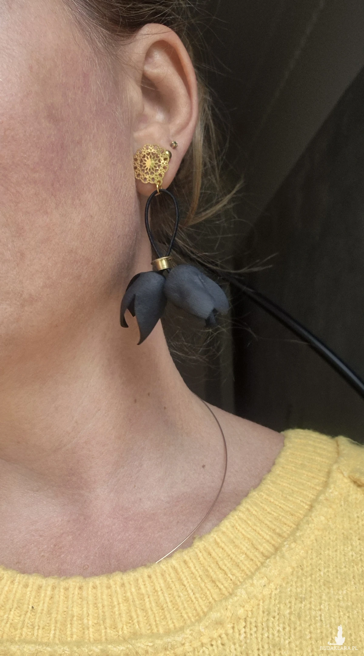 Kolczyki czarne tulipany Boho, zawieszka antyalergiczna, bardzo leciutkie niezwykle zwracającą uwagę eleganckie box x1