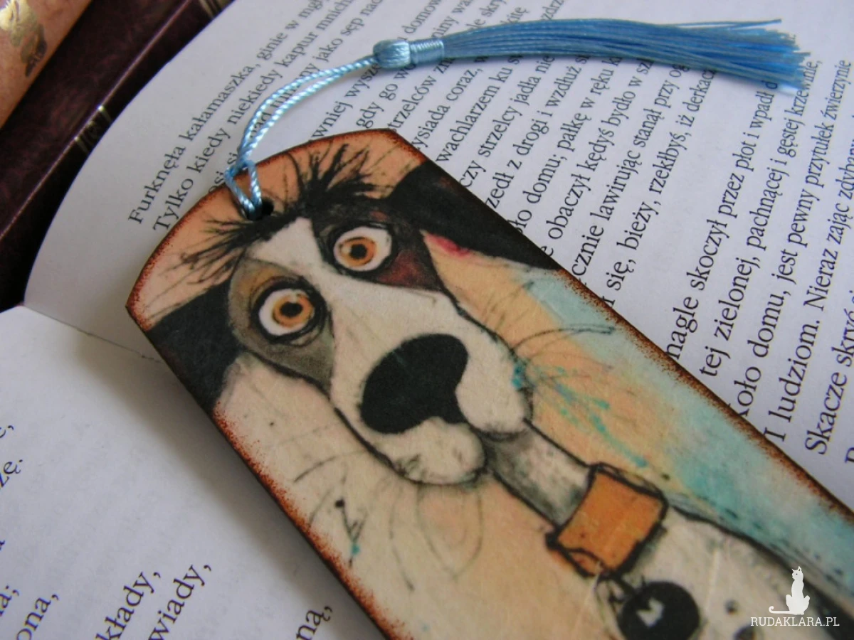 Zakładka dwustronnie zdobiona techniką decoupage i zabezpieczona kilkoma warstwami lakieru.