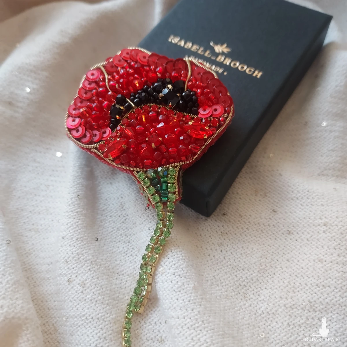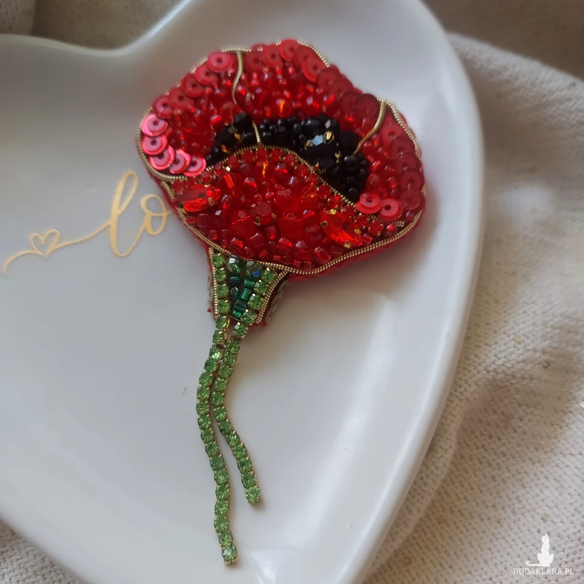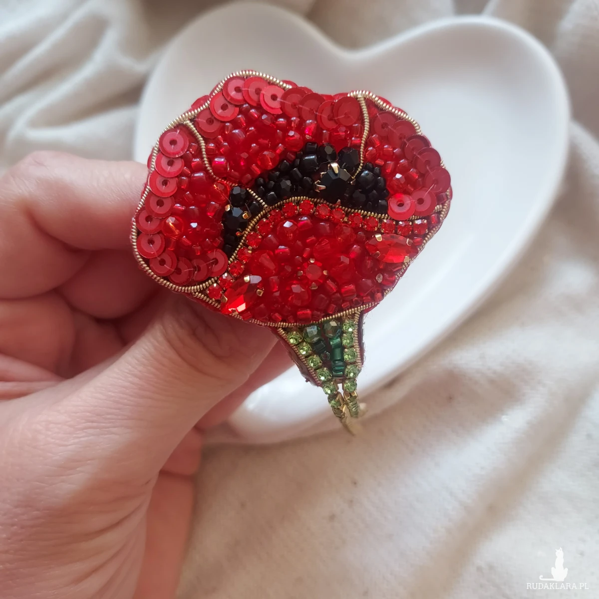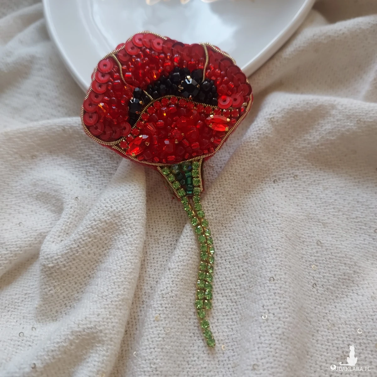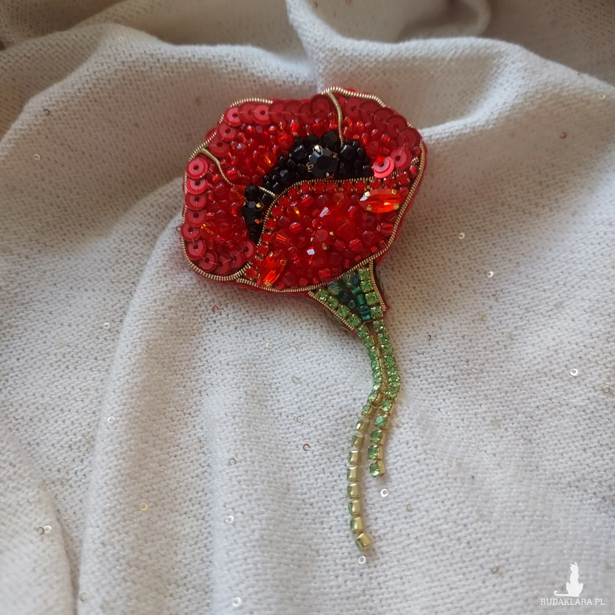 Wyjątkowa, niezwykle lekka, pełna blasku kryształków broszka MAK powstała haftem koralikowym.