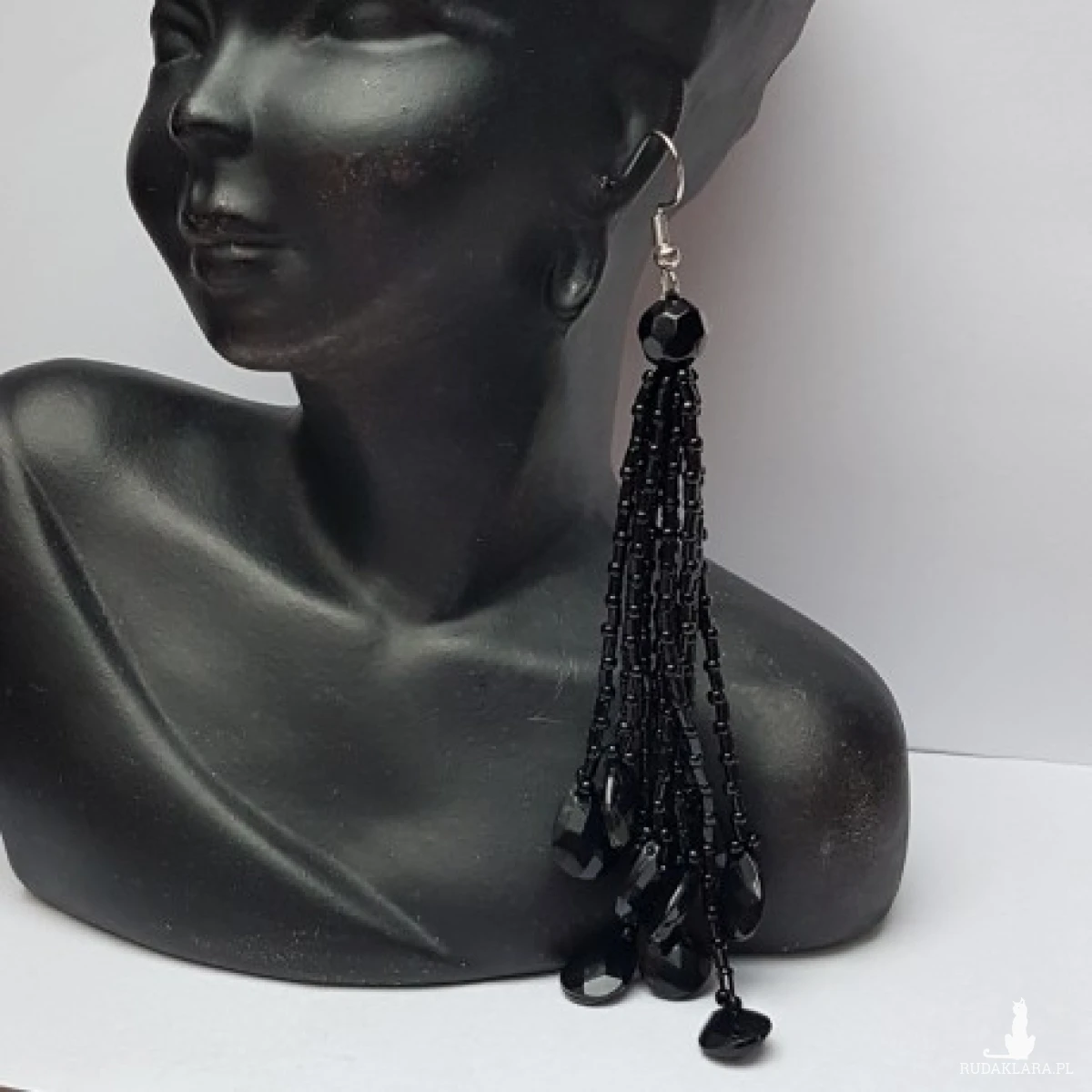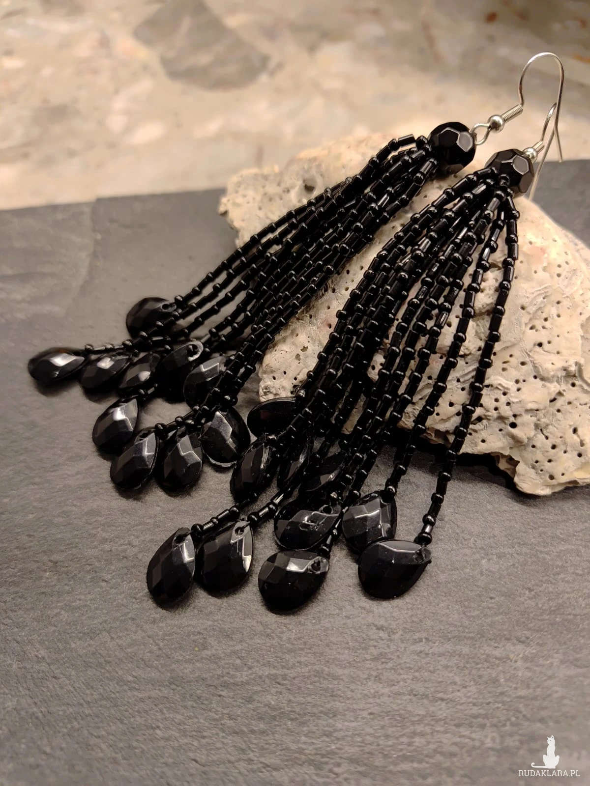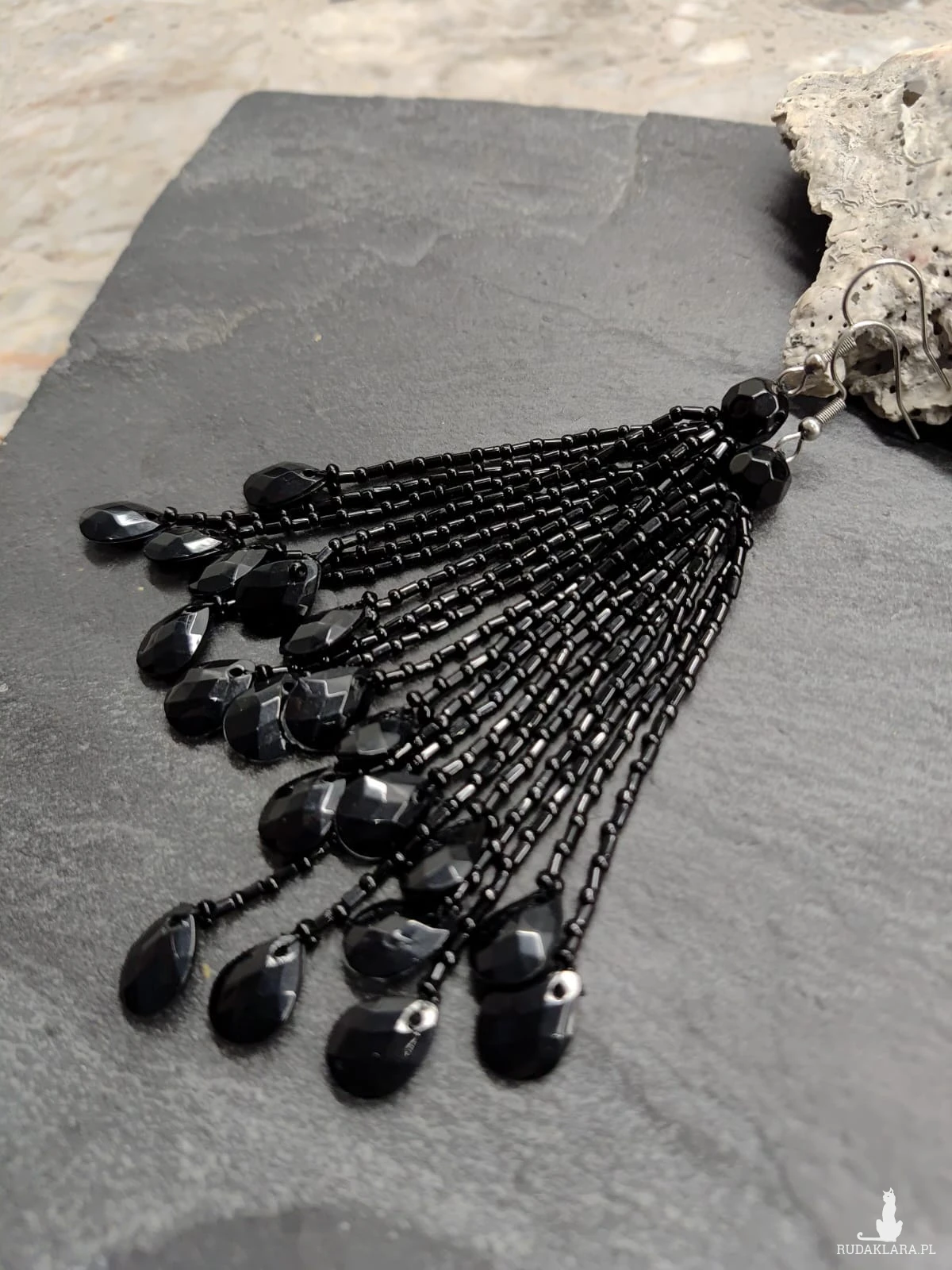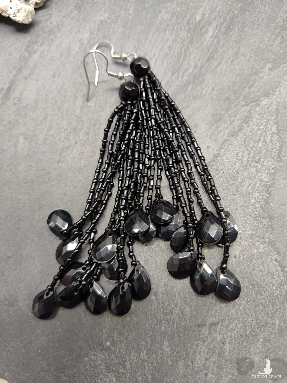 Kolczyki czarne z koralików. Frędzelki delikatne,lekkie,zakończone łezką