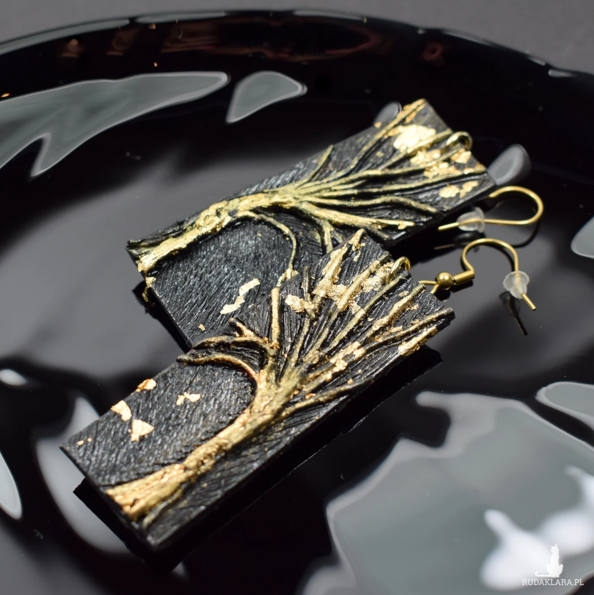 Czarno-złota kolorystyka oraz motyw drzewa nadają im wyrazisty, przyciągający uwagę charakter.