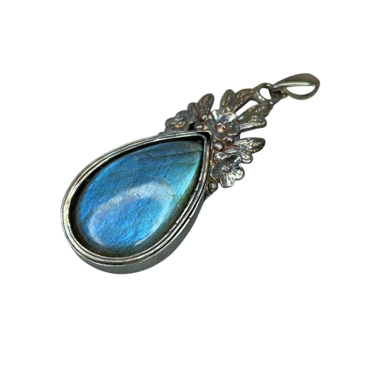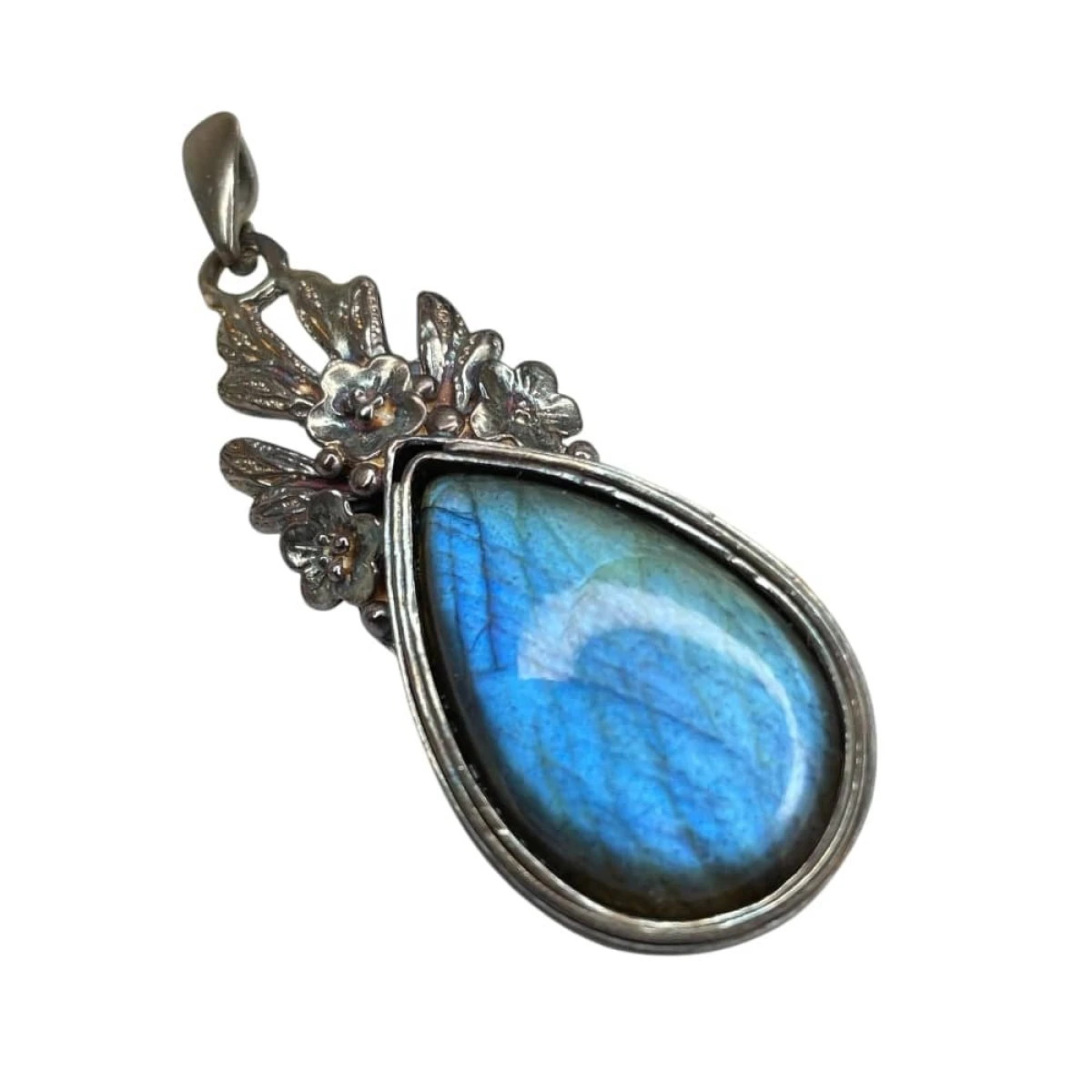 Ten srebrny wisior z labradorytem to połączenie subtelnej elegancji i artystycznego wyrazu. Hipnotyzujący kamień o niebieskim ogniu przyciąga wzrok i sprawia wrażenie, jakby skrywał w sobie tajemnicę. Jego chłodny blask doskonale współgra z detalami w kształcie kwiatów, tworząc kompozycję, która balansuje między romantyzmem a nowoczesną formą. Ręcznie wykonana oprawa ze srebra podkreśla wyjątkowość kamienia, a całość sprawia wrażenie małego talizmanu noszonego na co dzień. To biżuteria dla kobiet, które cenią indywidualność i dopracowane detale. Wisior świetnie odnajdzie się zarówno w codziennych stylizacjach, jak i jako wyjątkowy dodatek do bardziej eleganckich zestawów – dodając im charakteru i głębi.