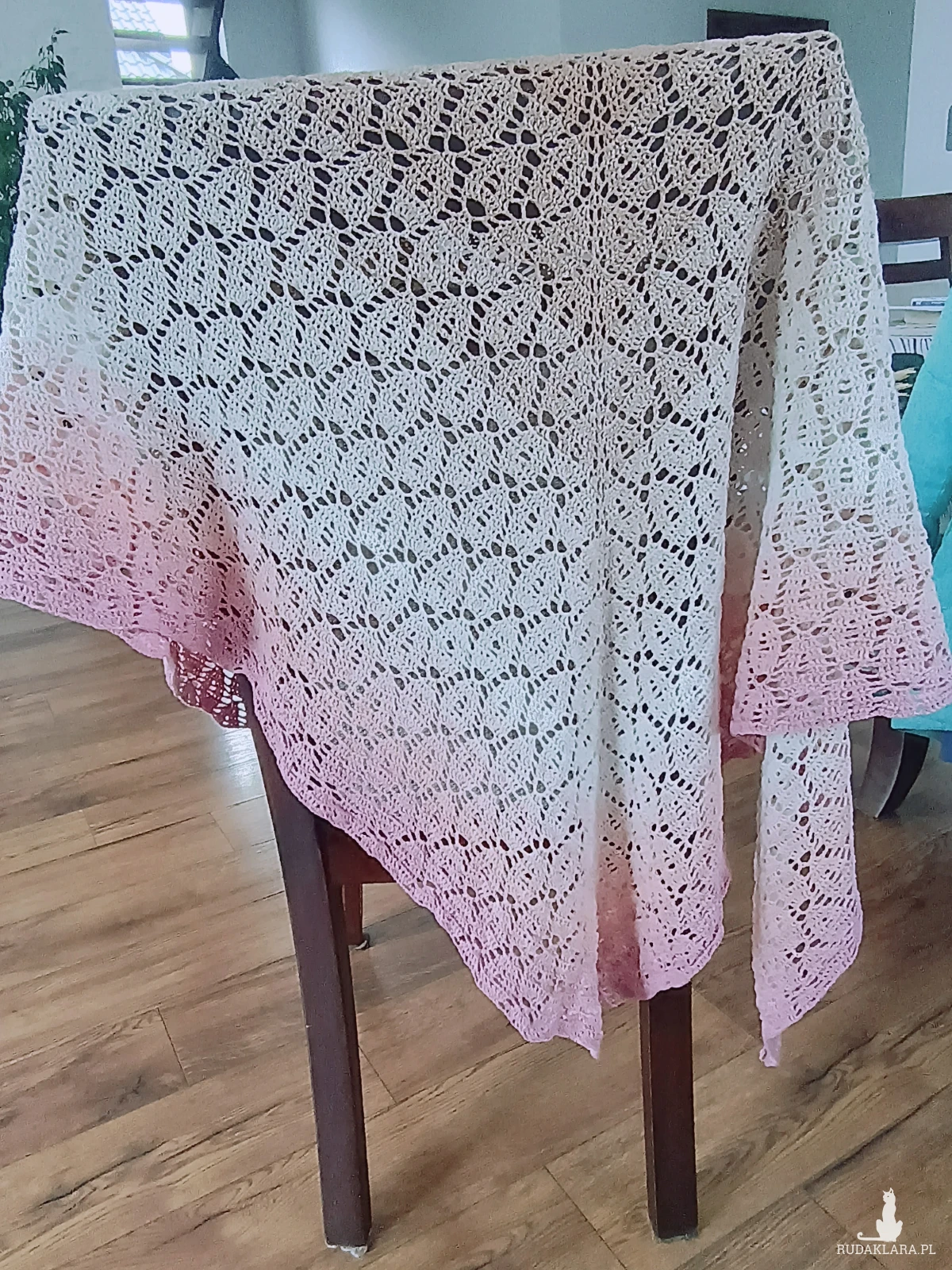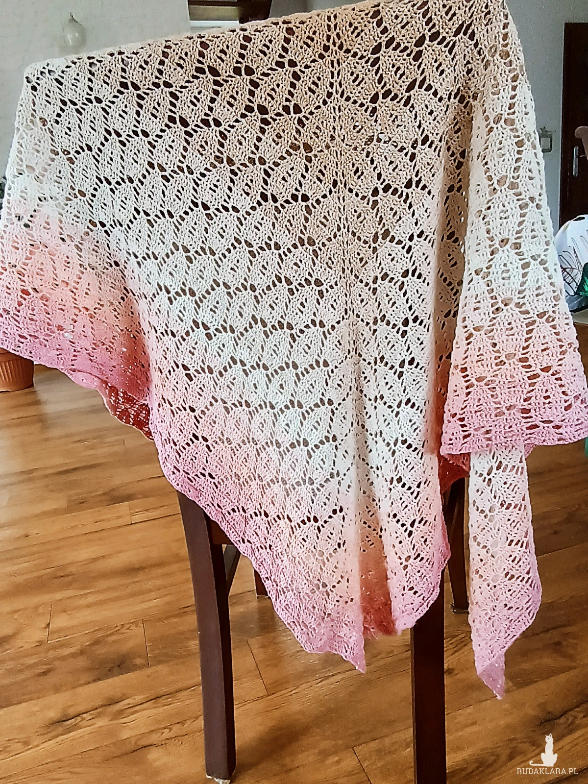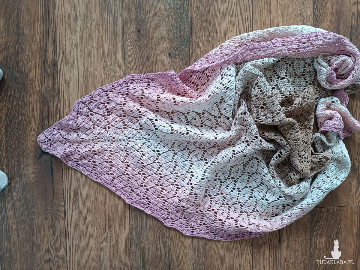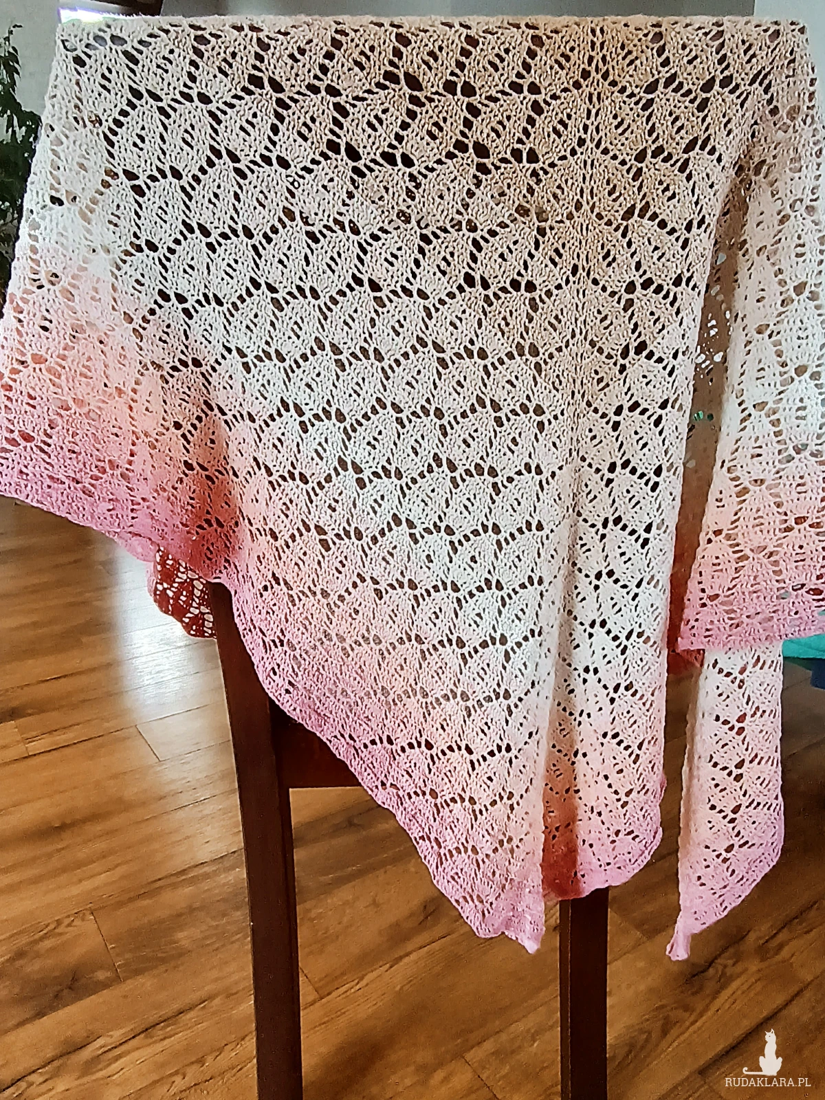 Duża chusta wykonana na szydełku z kokonka Naturę NT051 w kolorze malinowy róż, łososiowy, bezą, beż,ciemny beż, delikatna w dotyku, lejącą. Bardzo dobrze się układa. Chusta zrobiona wzorem pawie oko, z bawełny organicznej. Wymiary 182x90 cm. Chusta doskonale sprawdzi się na letnie dni jak i na chłodne wieczory. Dzięki soczystym, energetycznym odcieniom ożywi każdy dzień. Idealna jako dodatek do płaszcza lub kurtki. Doskonale sprawdzi się jako okrycie wierzchnie. Bardzo ładny element garderoby o uniwersalnym charakterze. Możliwość zamówienia chusty w innym kolorze. Czas realizacji 30 dni.