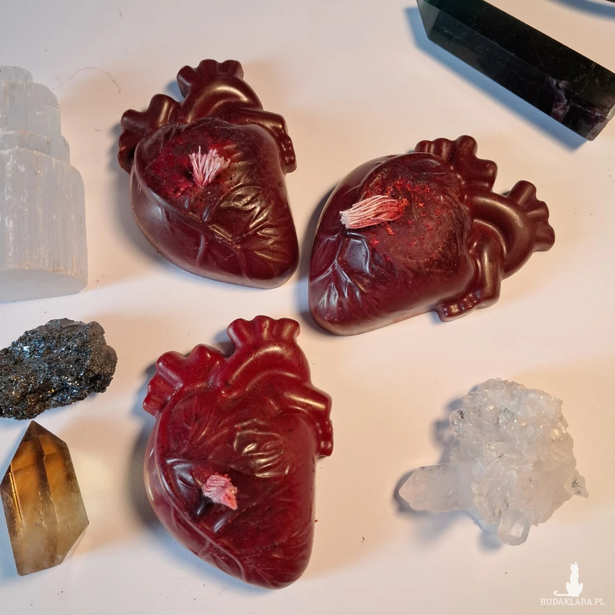 świeczka w kształcie serca z wosku palmowego o zapachu piwonii i maliny z różą