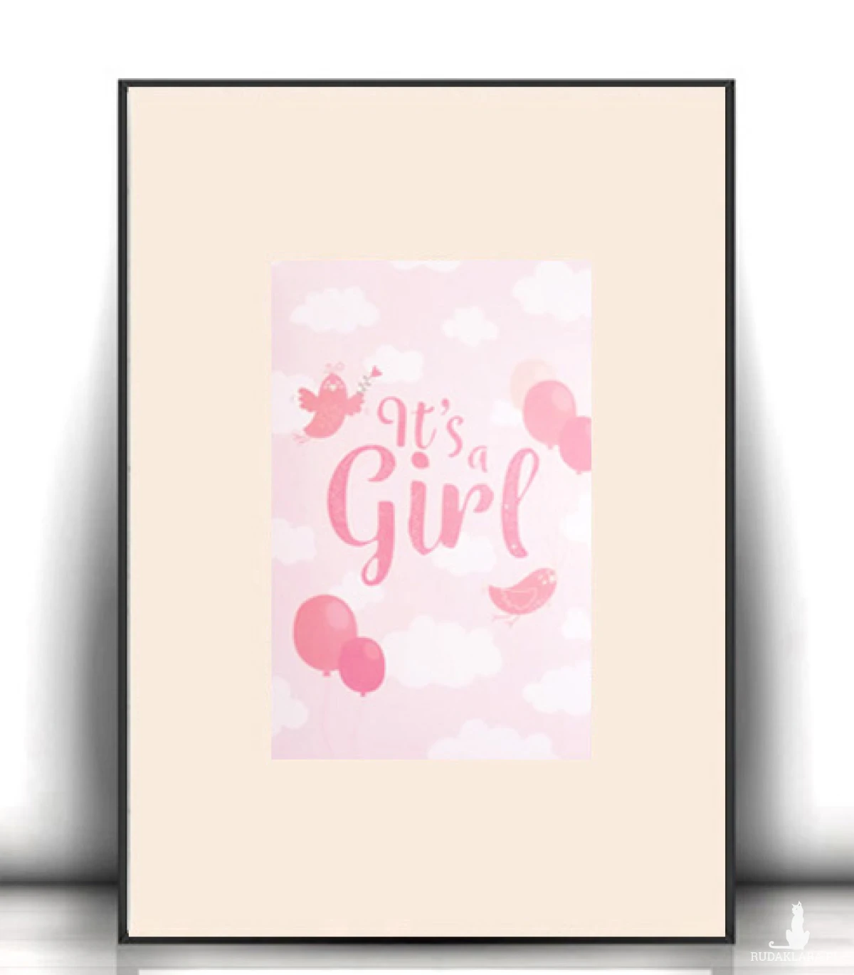 Nowy plakat w stylu boho, z napisem "It,s a girl" (To dziewczynka). Obrazek jest na kremowym kartoniku A4. Dekoracja na ścianę do pokoju dziewczynki lub nastolatki, sypialni, jadalni, salonu, przedpokoju, garderoby, kuchni, bawialni, holu itp. Plakat wystarczy dać do ramki 21x30 cm.. Poster będzie pasował zwłaszcza do wnętrz urządzonych w stylu boho, nowoczesnym, skandynawskim, minimalistycznym, loftowym, hygge, mieszanym.