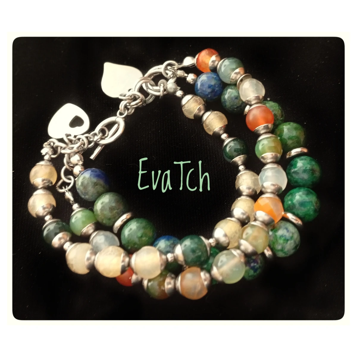 Bransoletka trzyczęściowa ze stali szlachetnej z agatem i azurytem