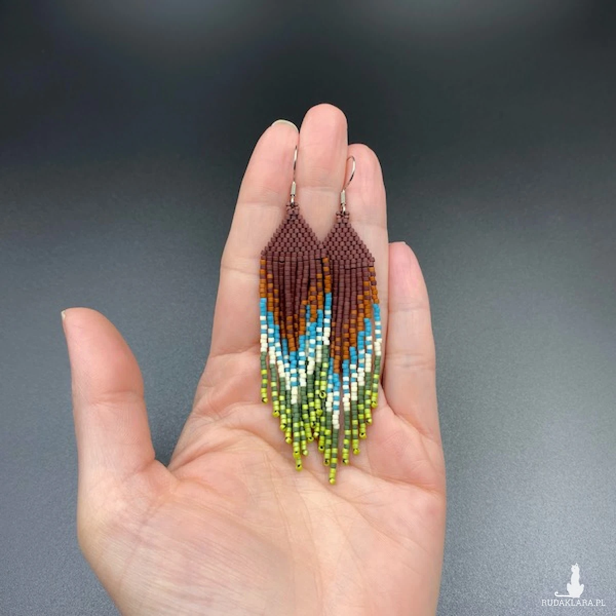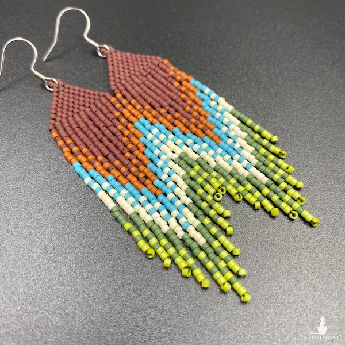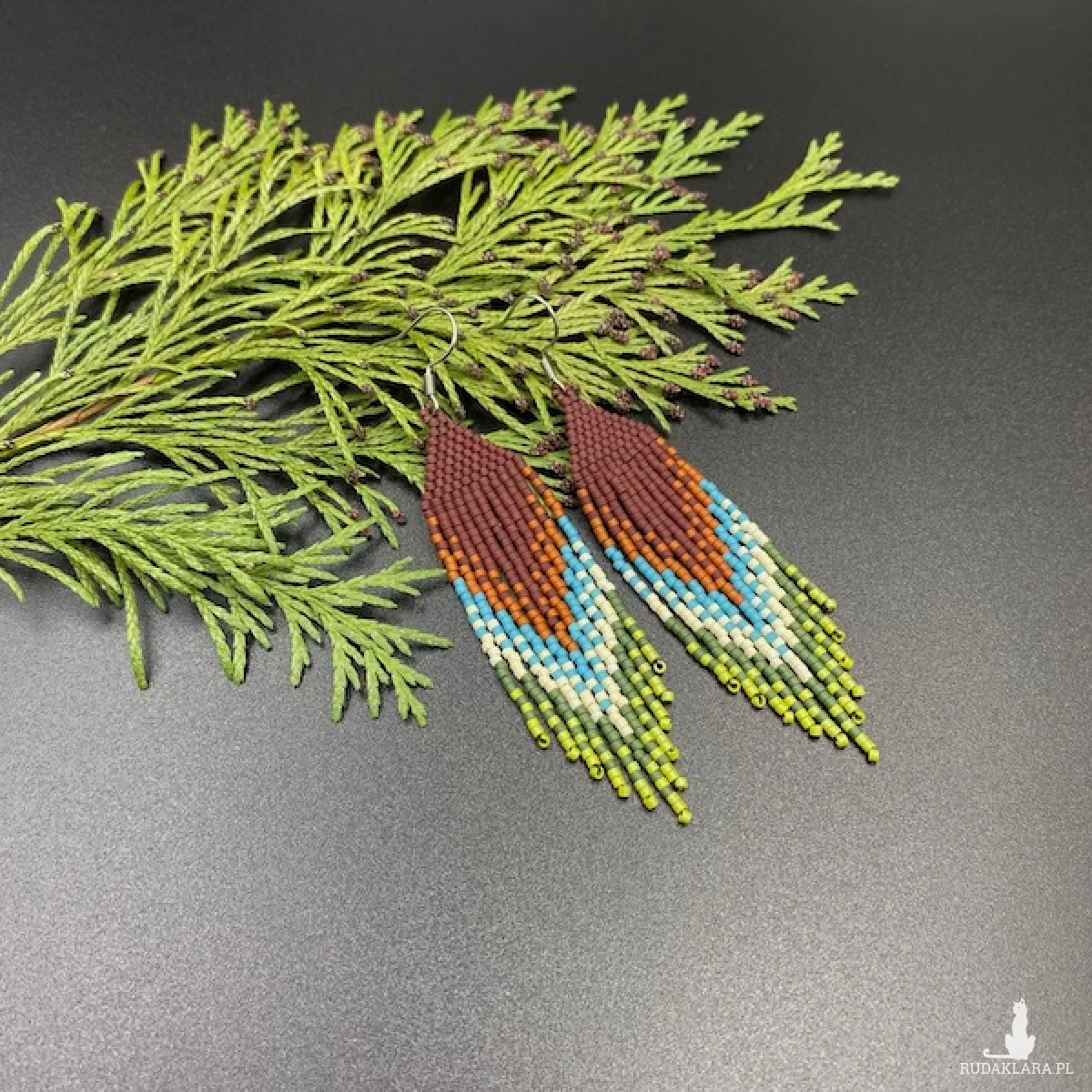 Kolory kolczyków: brązowy, rudy, niebieski, ecru, zielony.