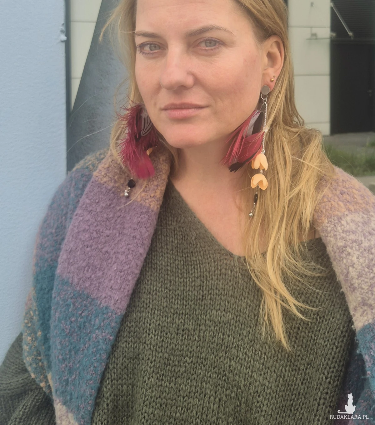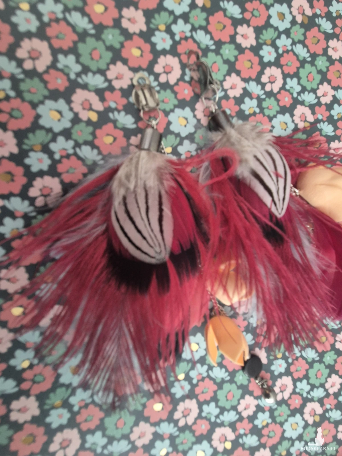 Klipsy długie pióra kwiaty