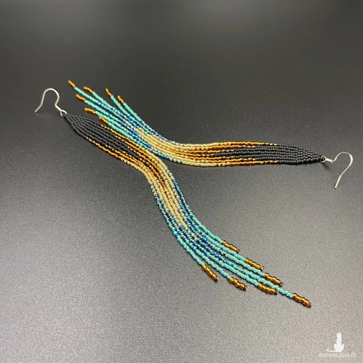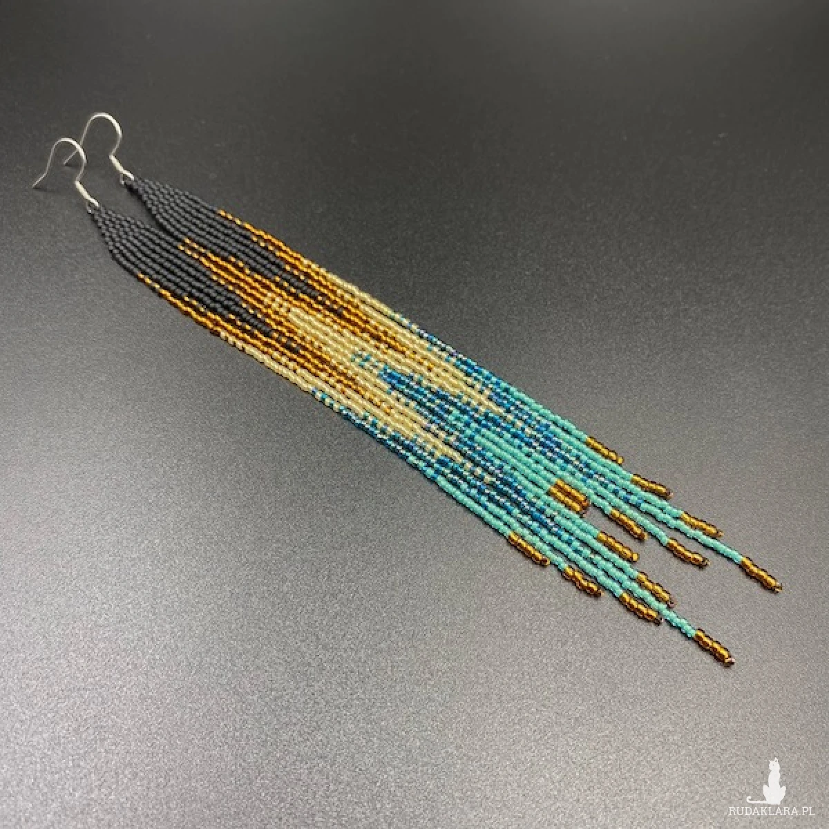 Bardzo długie i wąskie kolczyki do ramion z efektem cieniowania, zostały wykonane z najmniejszych na rynku koralików Toho 15. W 100% utkane ręcznie i z największą starannością.