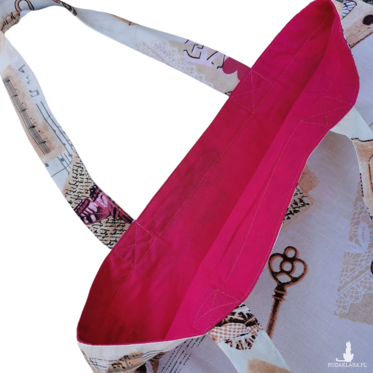 Torba jest duża, pojemna z długimi mocno przyszytymi wzmocnionymi rączkami i bawełnianą podszewką. Dwie warstwy tkaniny gwarantują, że torba jest mocna i wytrzyma nawet najcięższe zakupy. Staranne i dokładne wykonanie sprawia, że torba jest wyjątkowa i spowoduje, że zapomnisz o noszeniu zakupów w nieestetycznych foliowych siatkach.