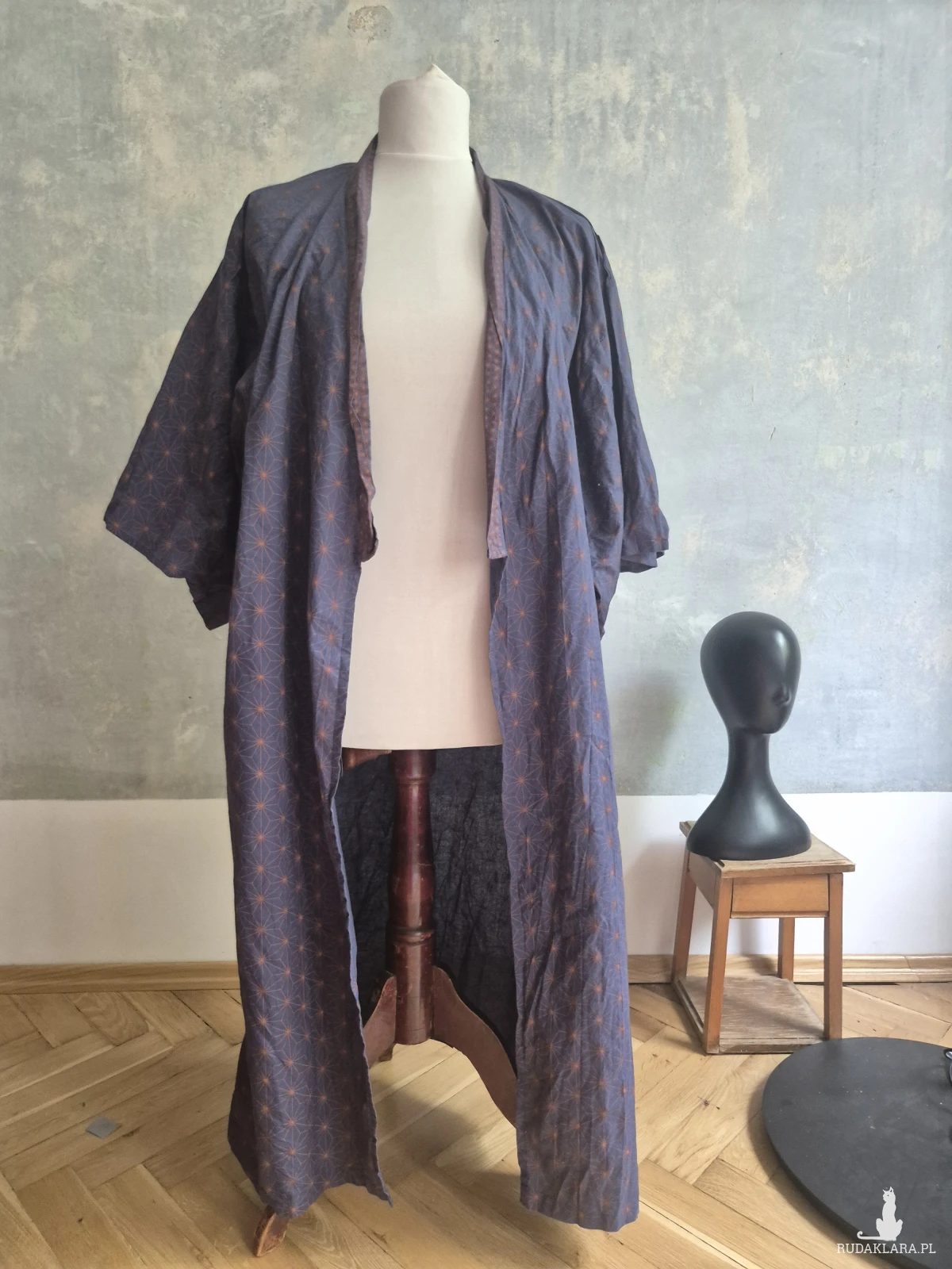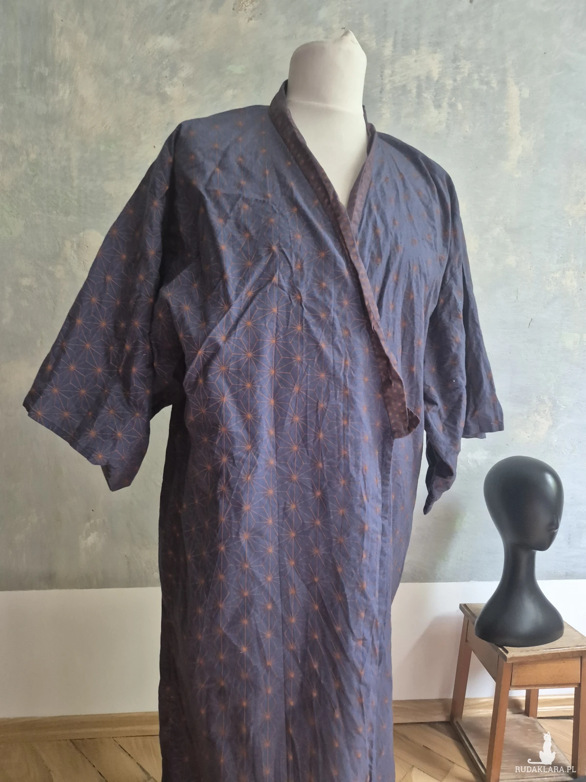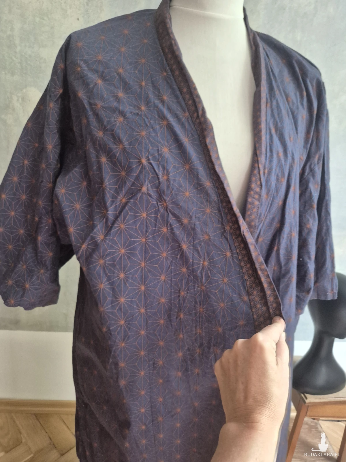 Piękne granatowe kimono materiał 100% bawełny stan super długość kimona 130cm, długość rękawa 35cm,polecam