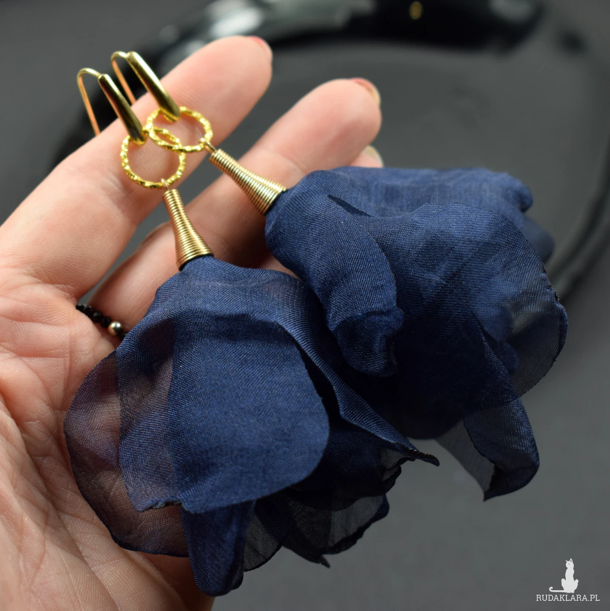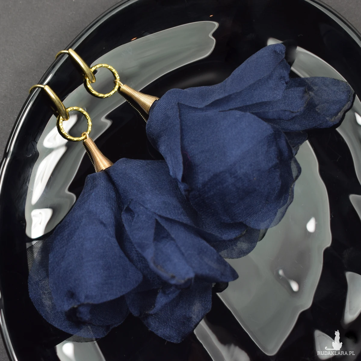 Subtelne i zwiewne kolczyki w eleganckim połączeniu granatu i złota.
