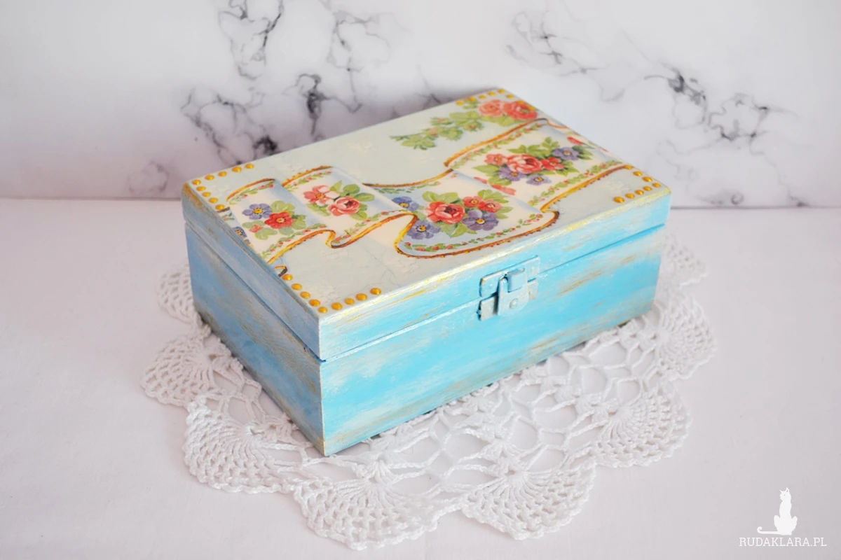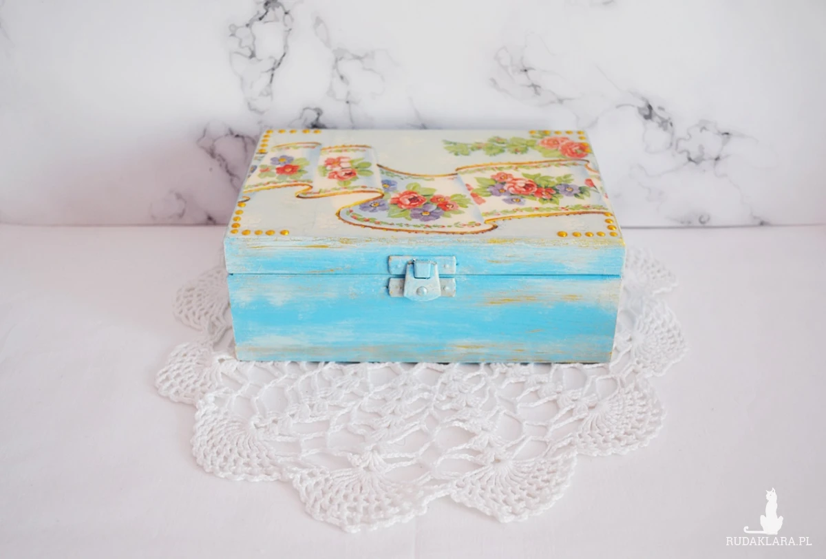 Drewniane pudełko zdobione ręcznie techniką decoupage – metoda serwetkowa
