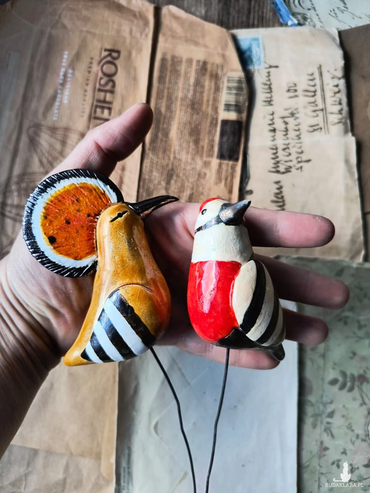 Siedzące ptaszki ceramiczne, wykonane z gliny szamotowej, wypalone na biskwit, a następnie szkliwione w temp. ok 1260 stopni C. Wymiary 6 cm x 5,5 cm. Na piku, świetnie sprawdzą się jako dodatek do doniczki.. Serdecznie polecam!!!