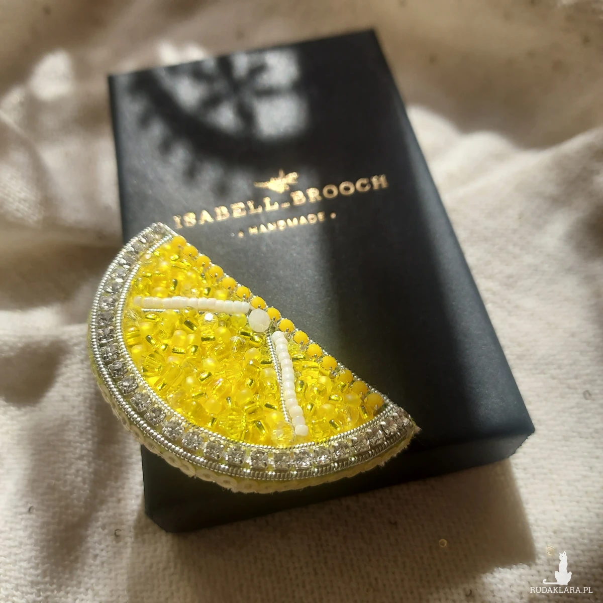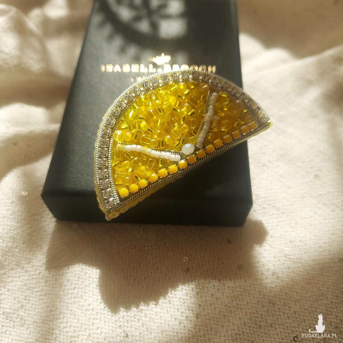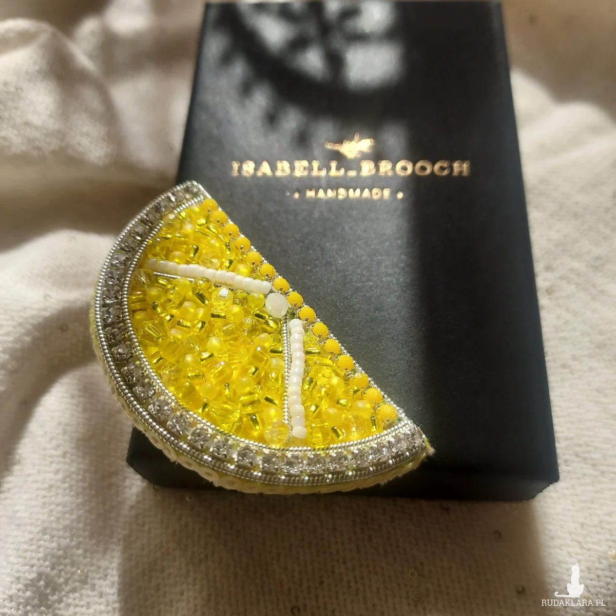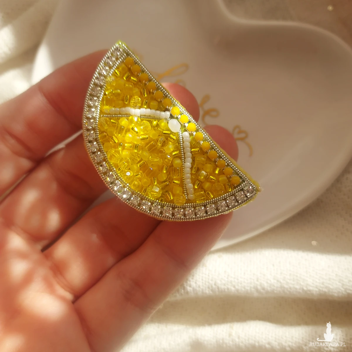 Wyjątkowa, lęka, niepowtarzalna broszka plasterek CYTRYNY - to idealny wybór dla kobiet, które lubią bawić się modą i podkreślać swój indywidualny styl.
