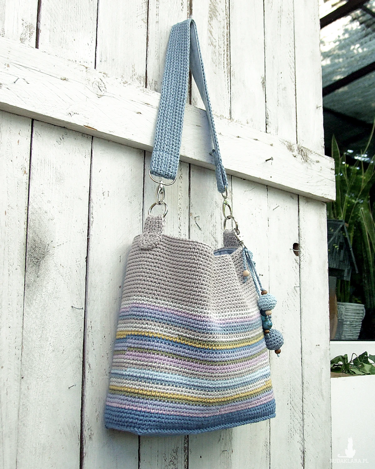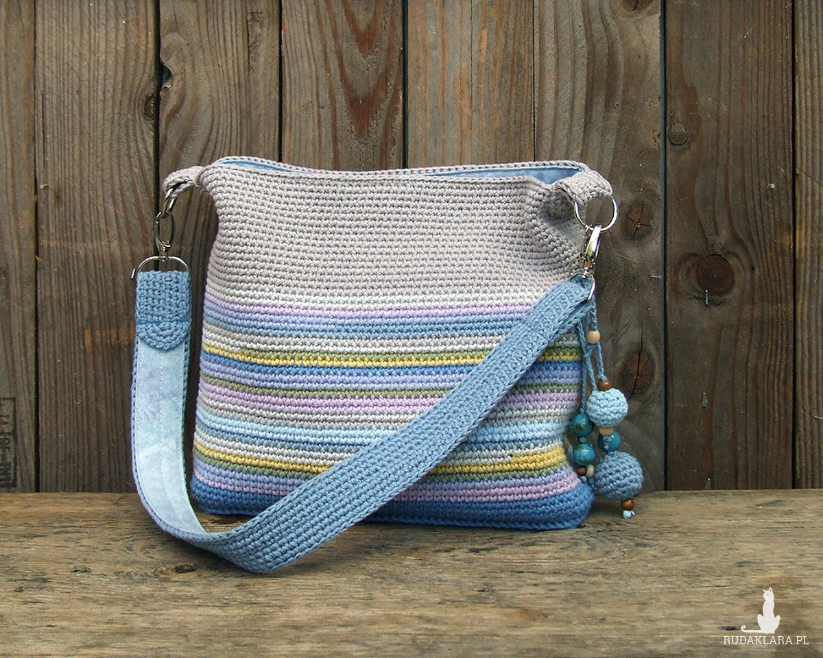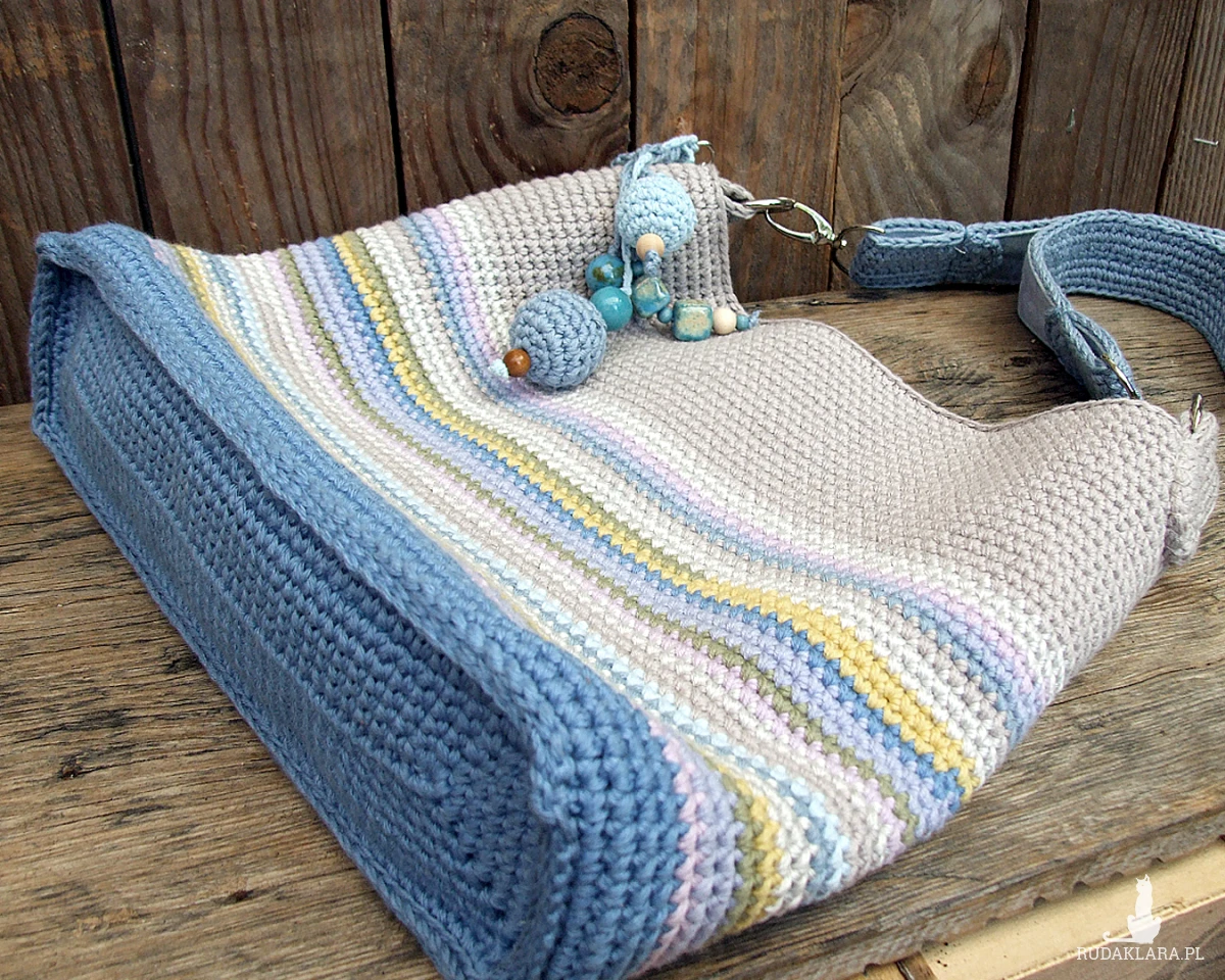 Bawełniana torebka na ramię, średniej wielkości. Wykonana na szydełku z włóczki - 100 % egipskiej bawełny czesankowej.