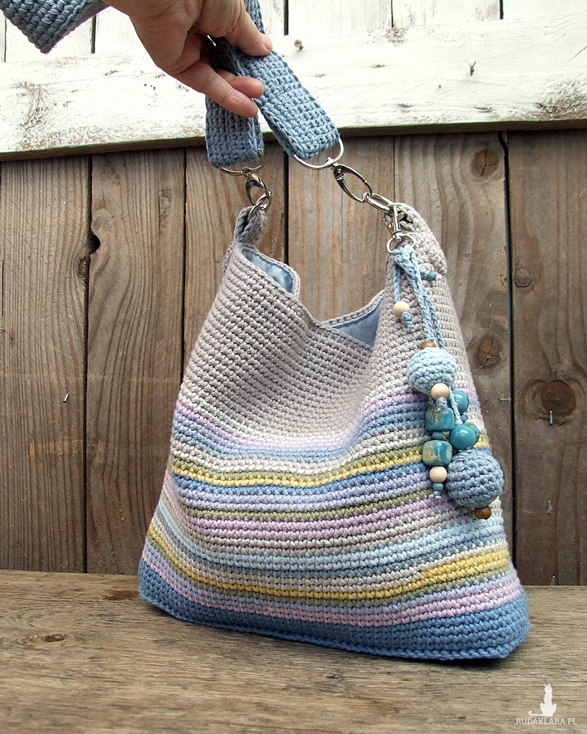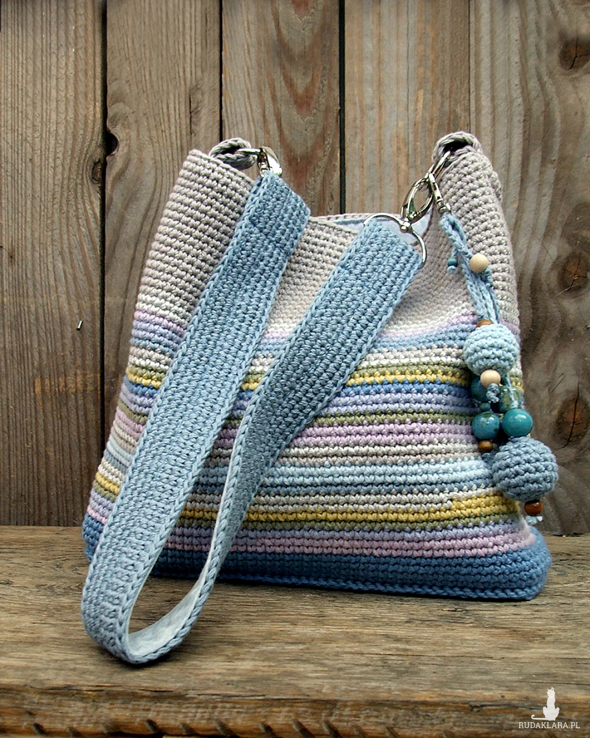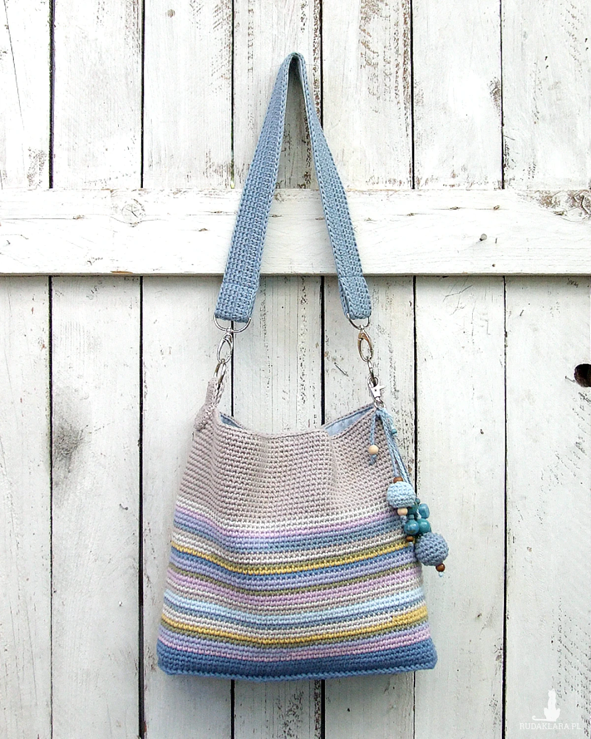 Bawełniana torebka na ramię, średniej wielkości. Wykonana na szydełku z włóczki - 100 % egipskiej bawełny czesankowej.