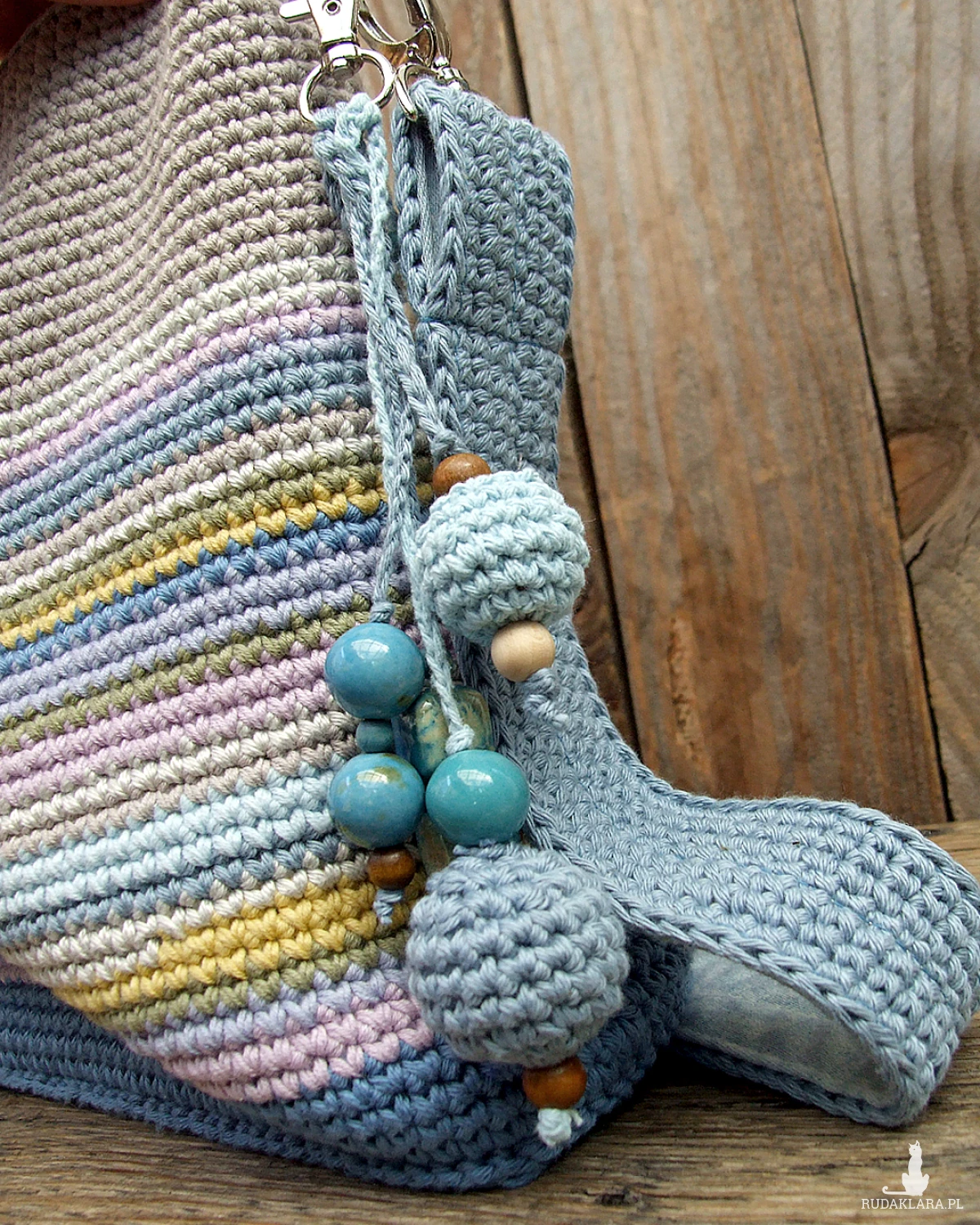 Dodatkową ozdobą jest duży brelok, wykonany z drewnianych i ceramicznych koralików, brelok można odpinać.