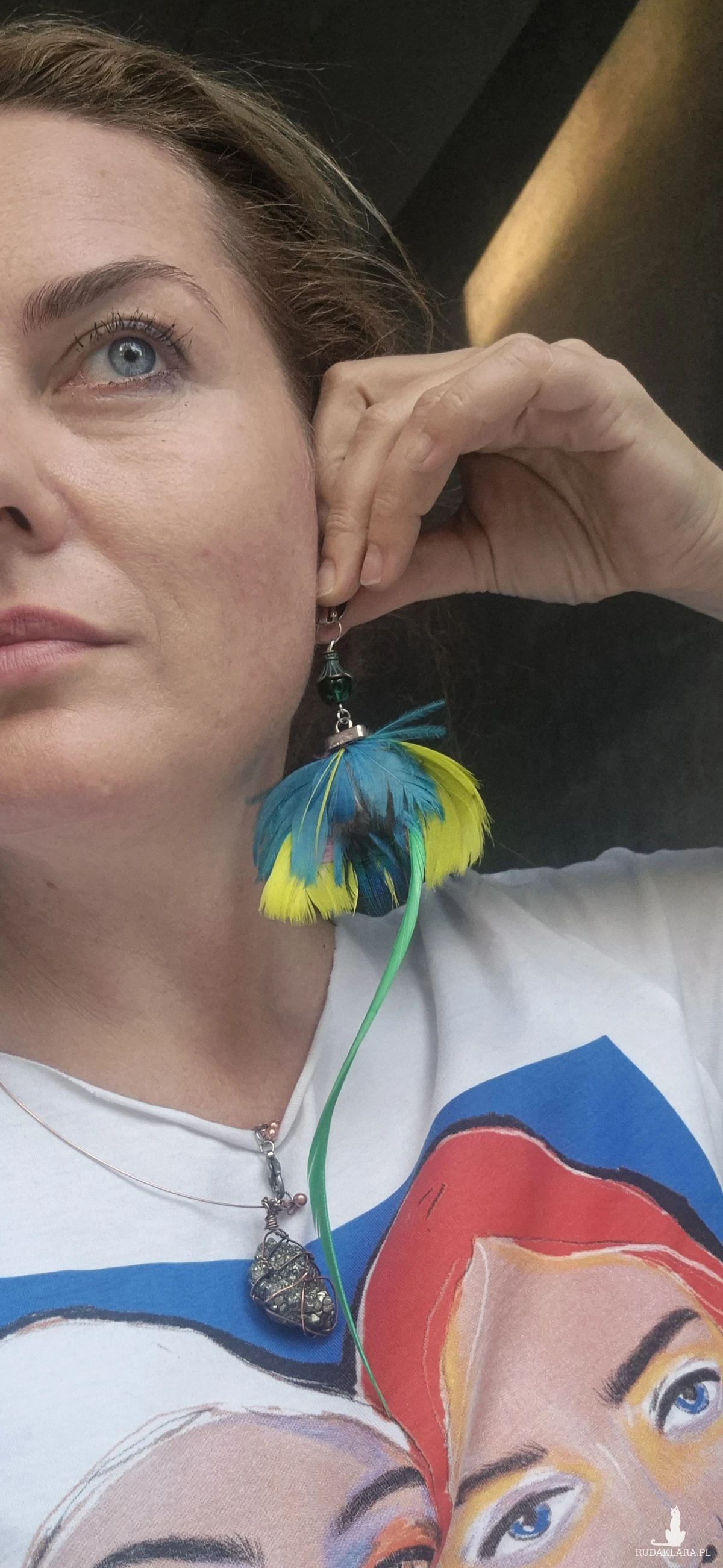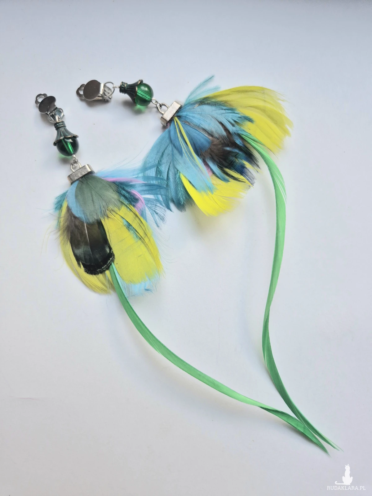 Klipsy lekkie kolorowe długie pióra , niezwykle widowiskowe polecam