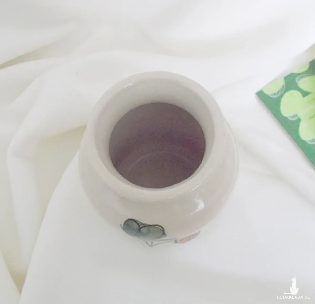 Retro, ręcznie malowany, fajansowy pojemnik na sól lub cukier lub wazonik. Przedmiot z czasów PRL lata 80, Włocławek. Stan bdb. Wymiary: wysokość 12,5 cm, średnica u góry 5,5 cm, dół 6,5 cm. Przedmiot zarówno do dekoracji domu, jak i do użytku. Zastosowanie według własnego uznania.
