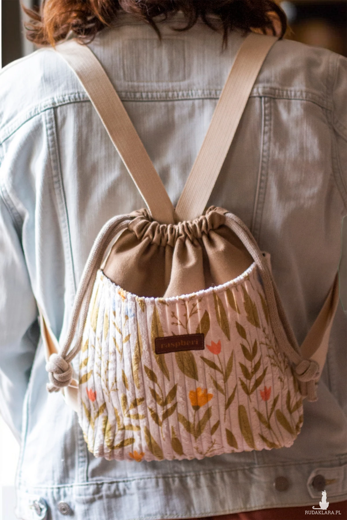 Plecaczek jest nieduży (wielkość to około 28x26cm), natomiast ze względu na duże zaszewki na dnie - dosyć pojemny.