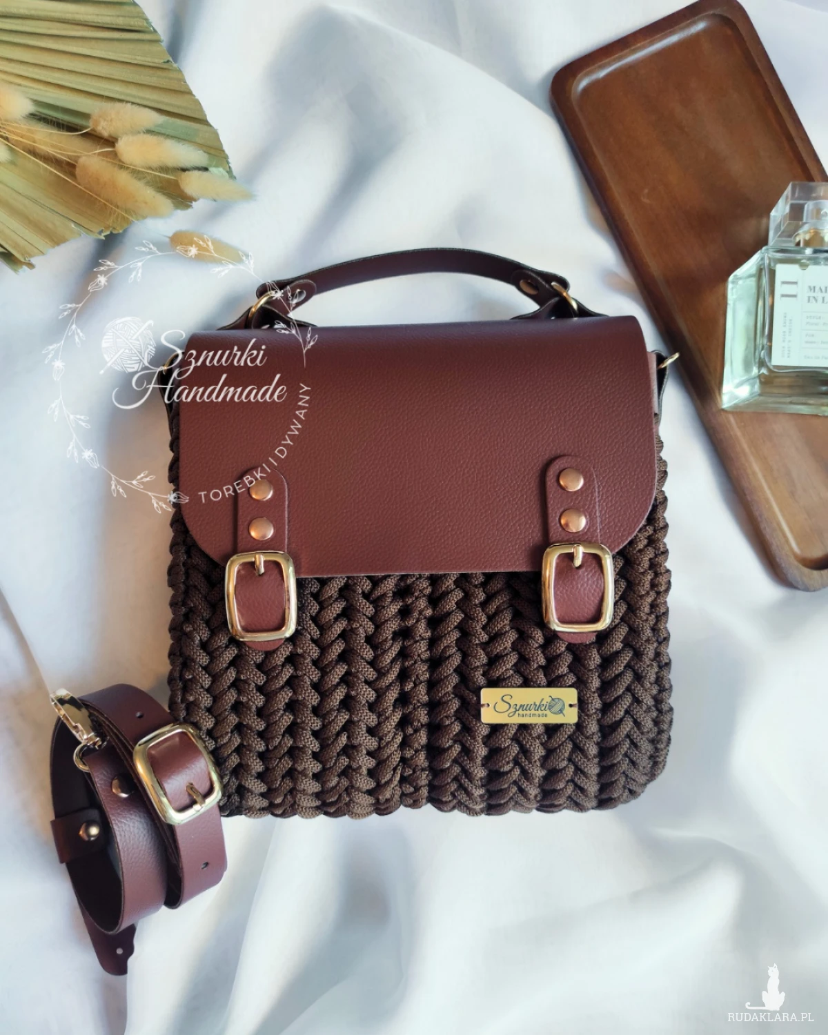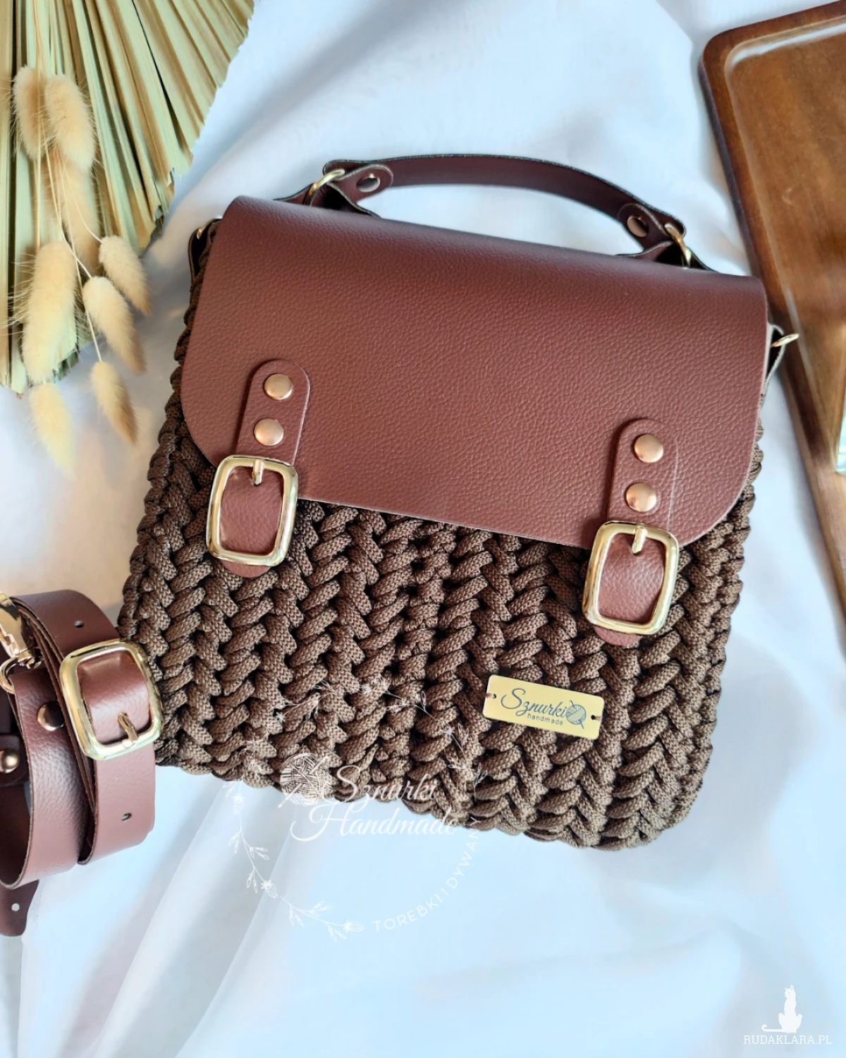 Torebka wykonana ręcznie, z dodatkiem skóry naturalnej. Bardzo wygodny model z uchwytem na klapce.