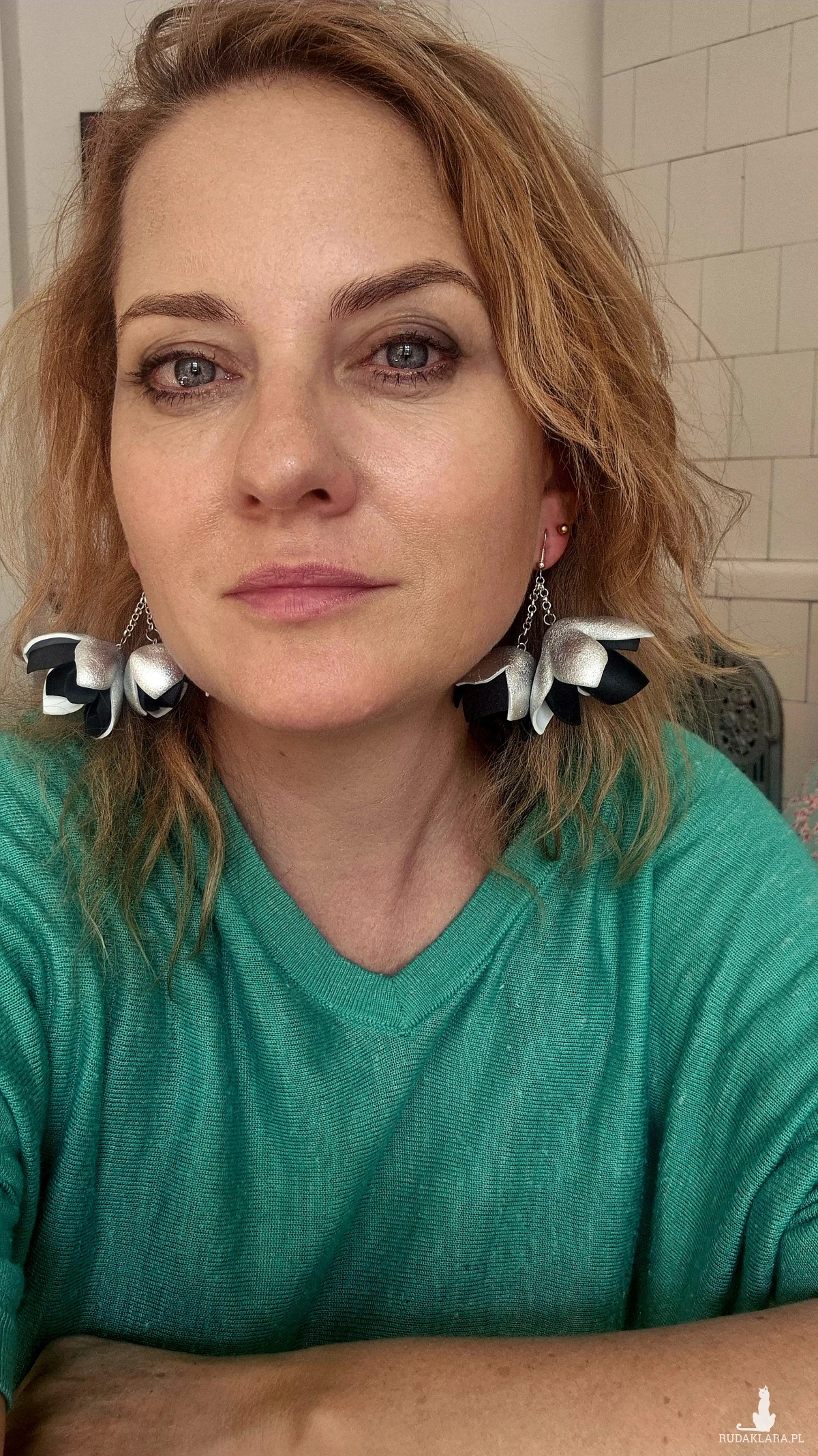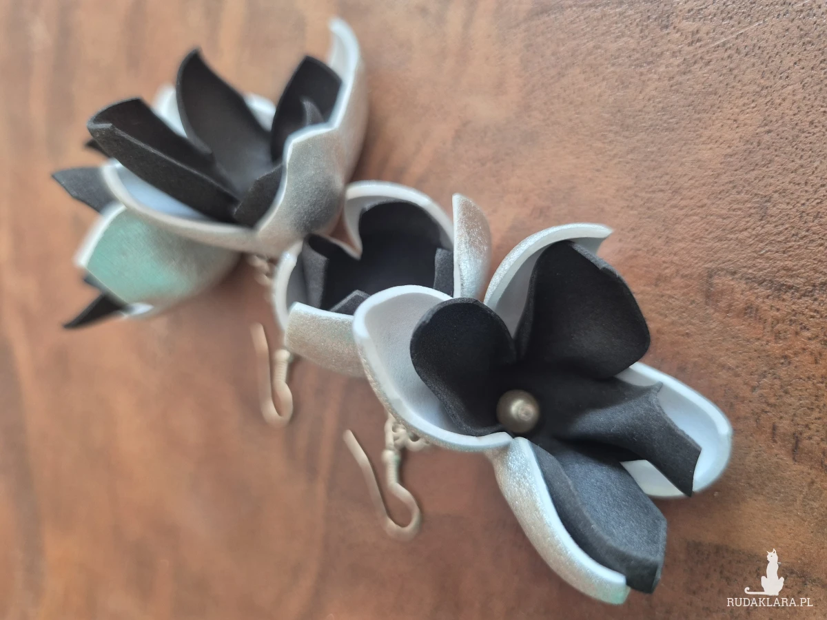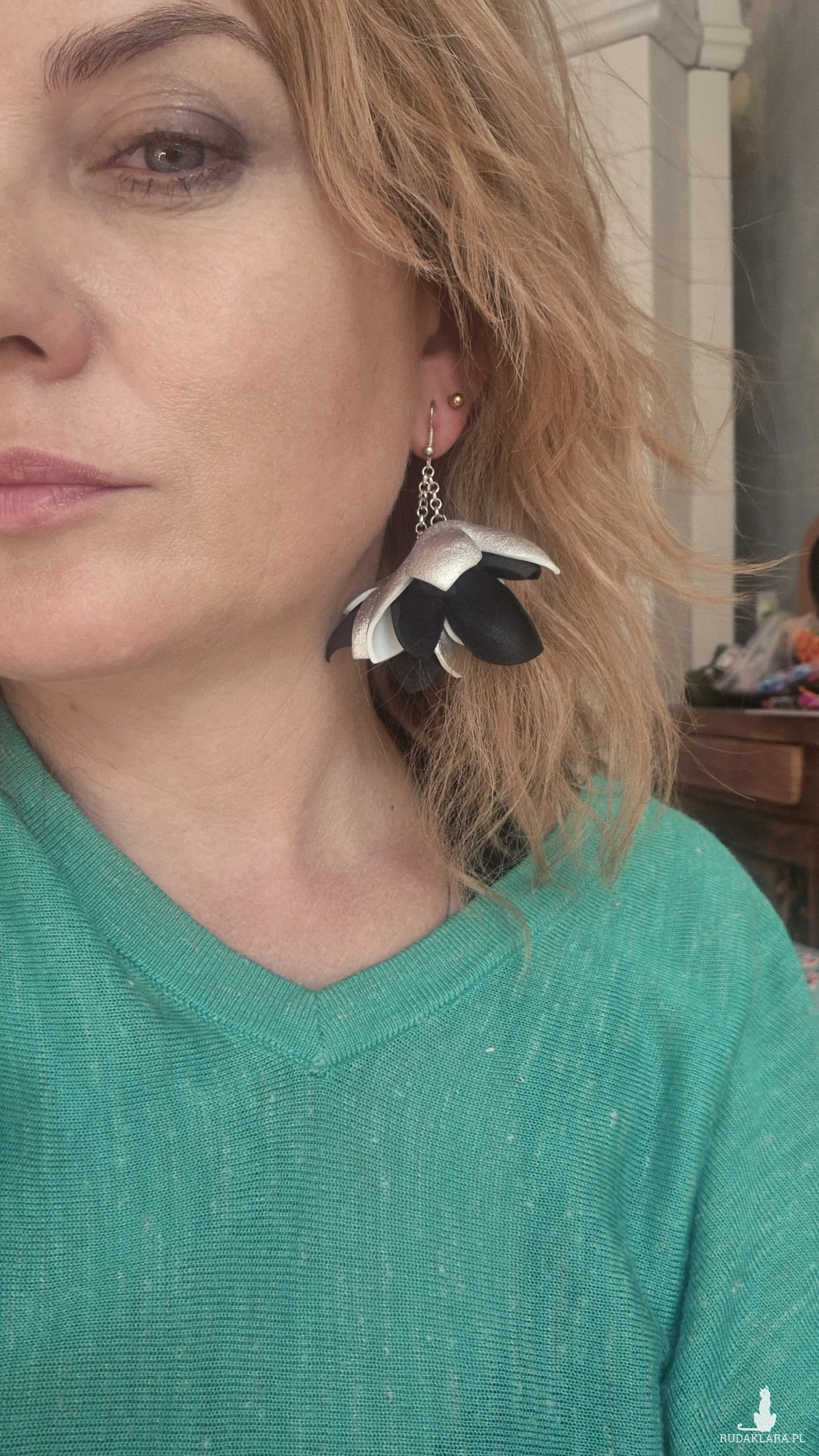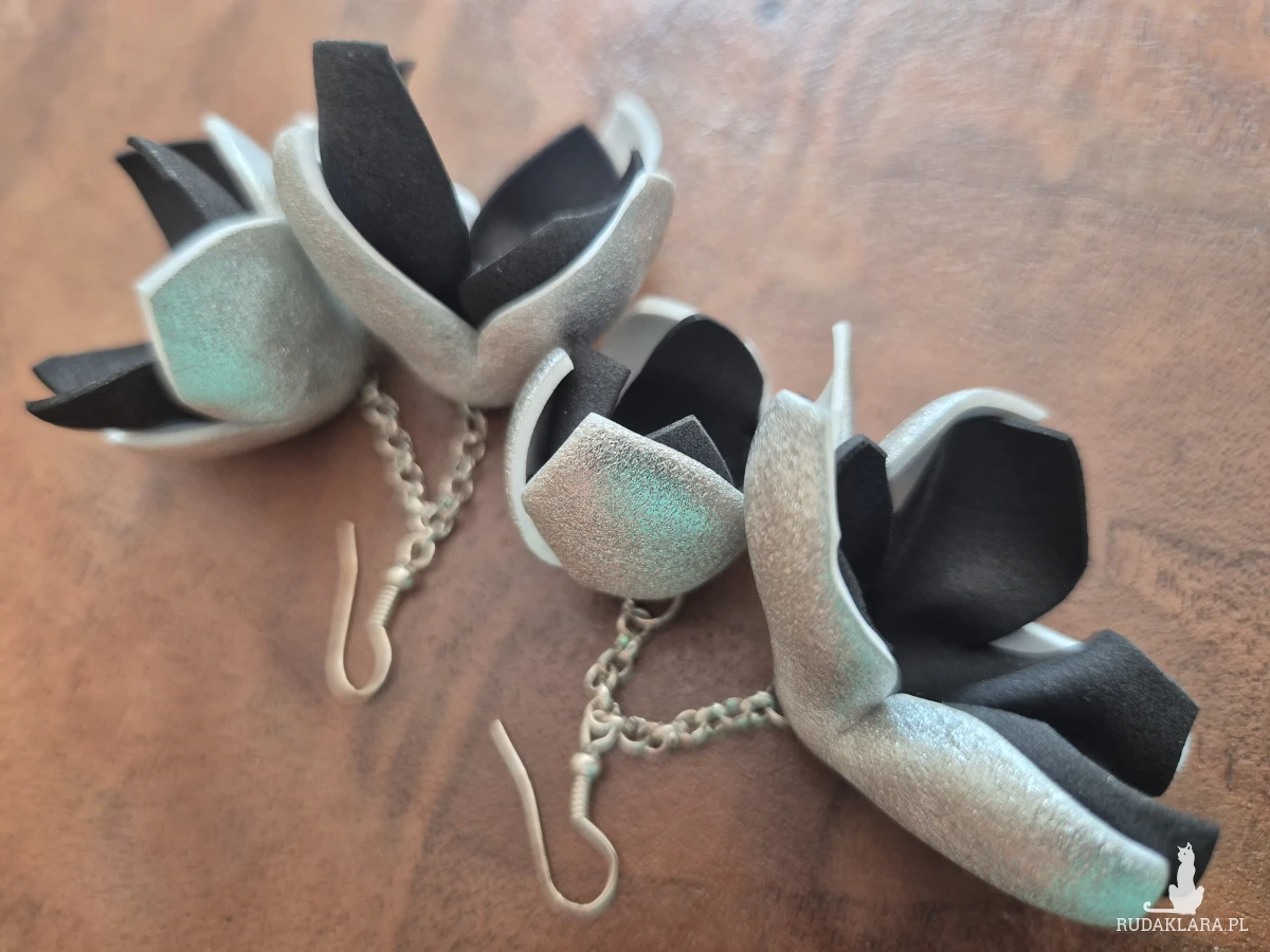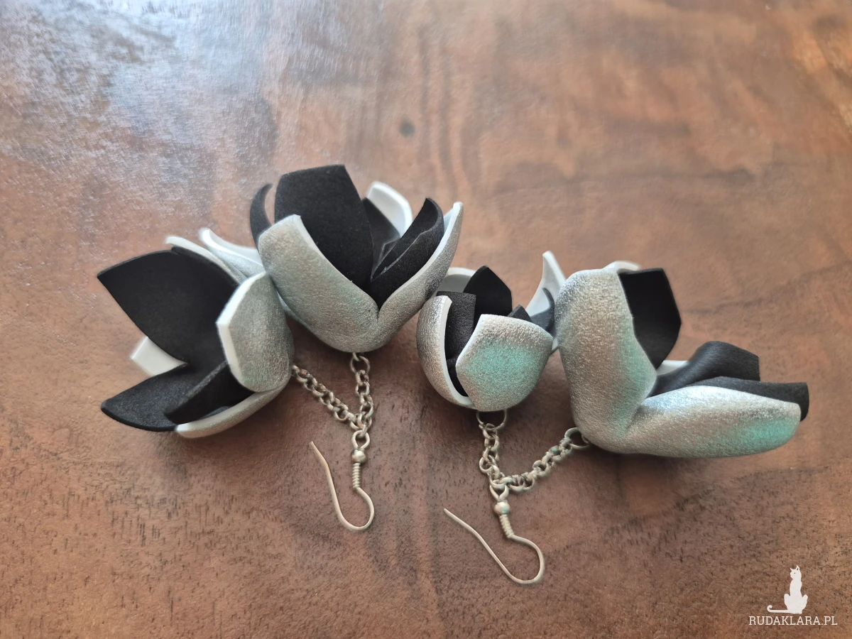 Kolczyki czarno-srebrne kwiaty tulipany bardzo lekkie niezwykle widoczne,polecam