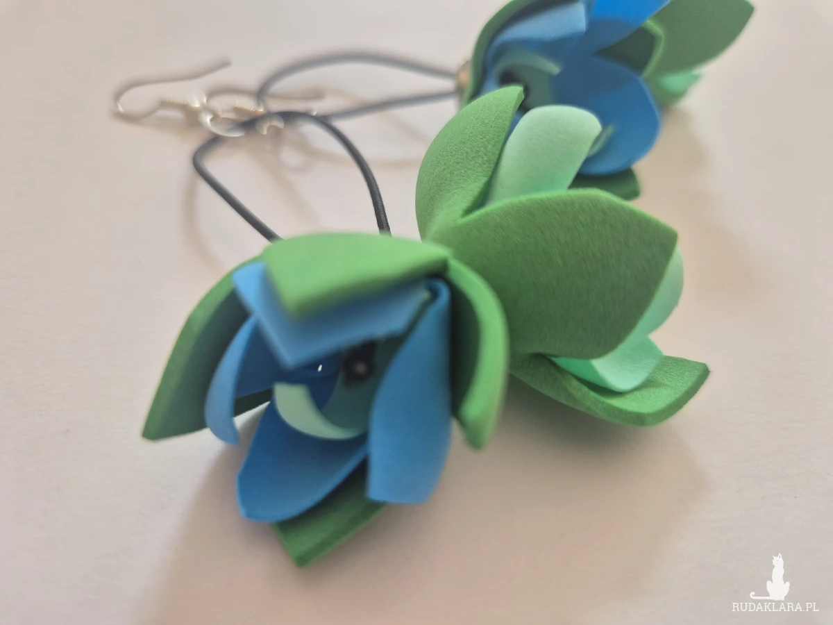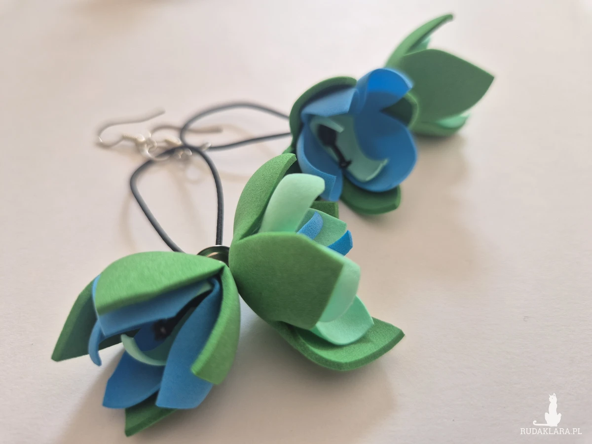 Kolczyki zielono-niebieskie kwiaty tulipany bardzo lekkie niezwykle widoczne,polecam