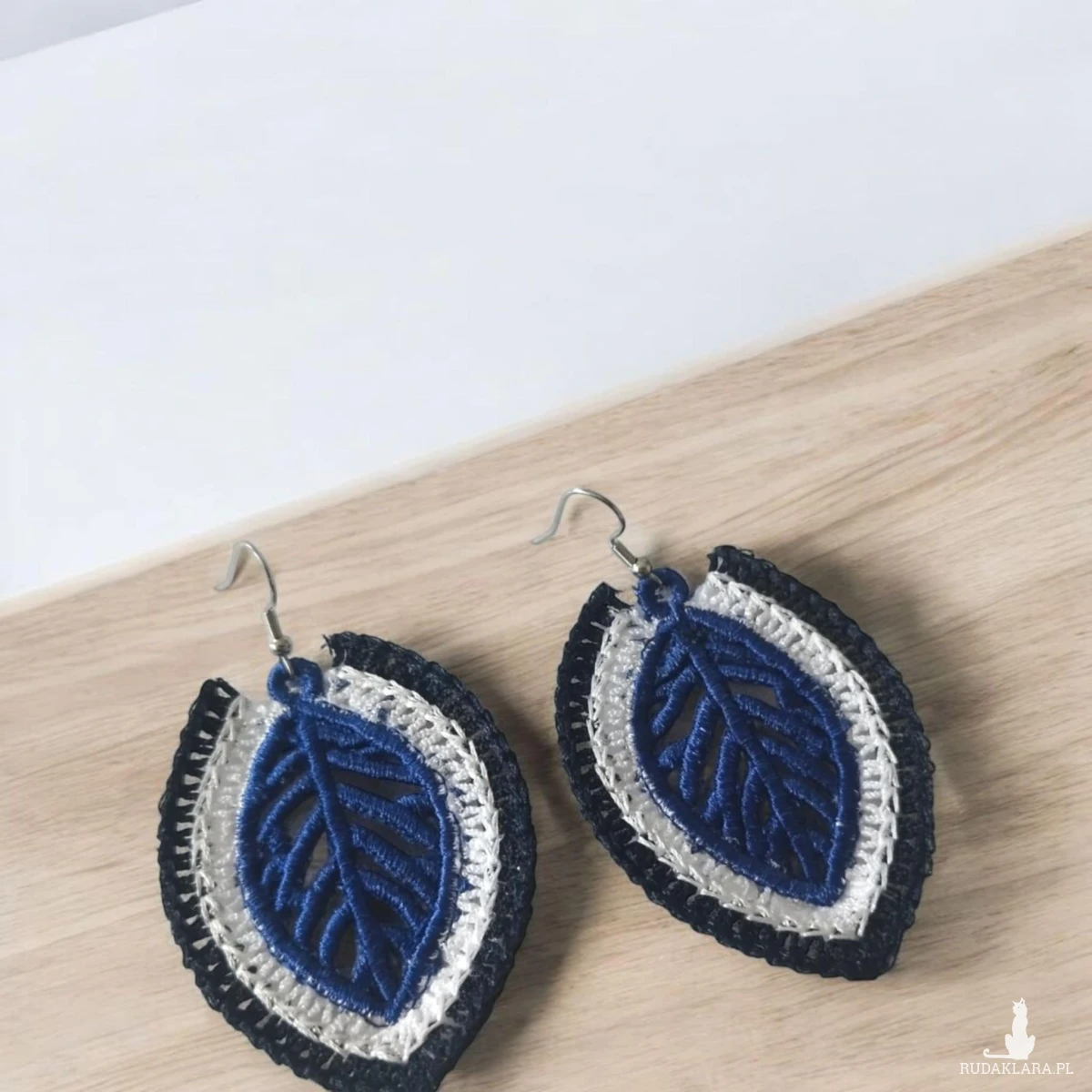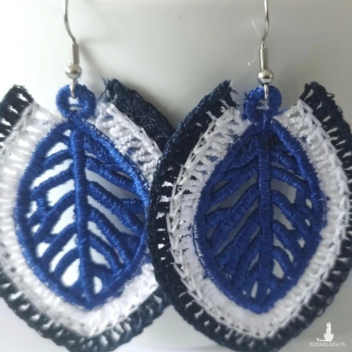 Kolczyki są haftowane (haft maszynowy). Haft jest gęsty, dobrze utrzymuje kształt i wygląd kolczyków. Haftowane kolczyki też są lekkie - to ich kolejny atut.