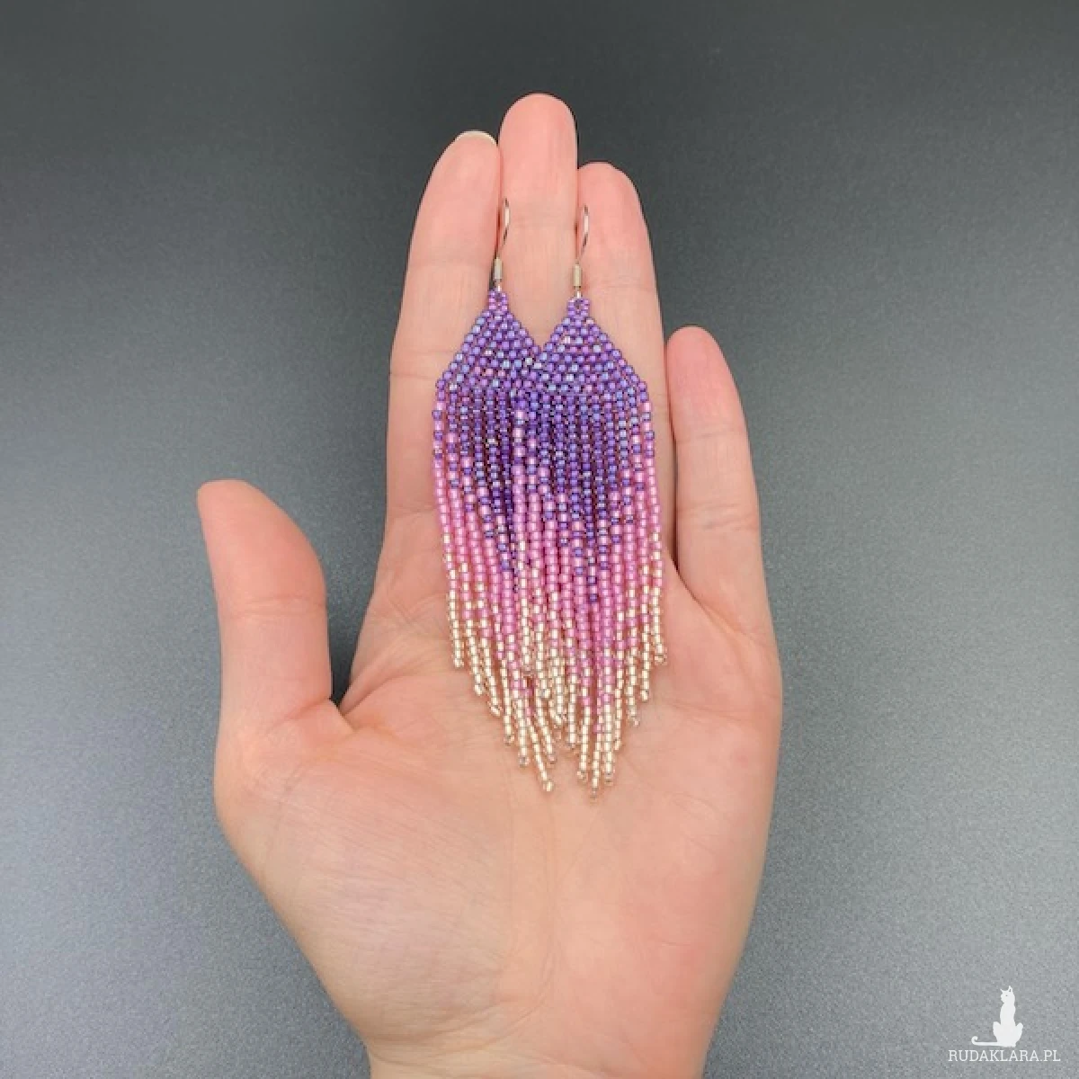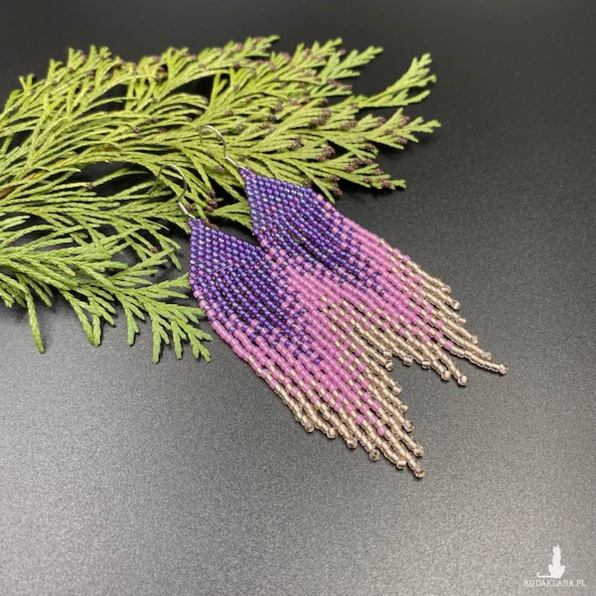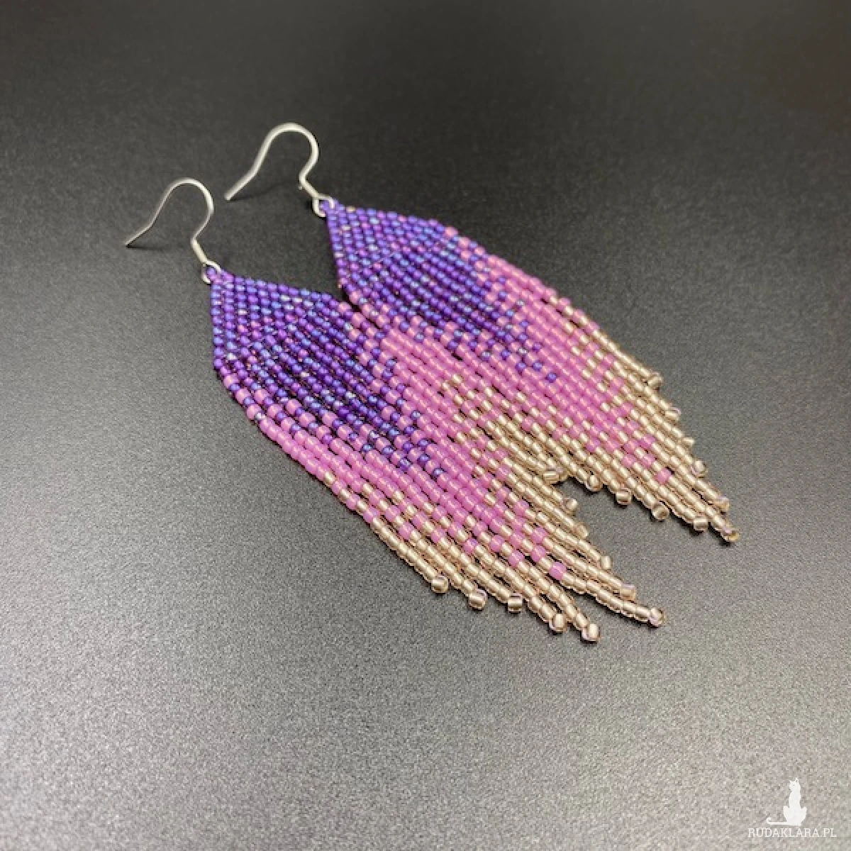 Etniczne kolczyki z efektem cieniowania wykonane ściegiem comanche tzw. cegiełkowym. W 100% utkane ręcznie z koralików TOHO 11. Każdą pracę wykonuję bardzo starannie.