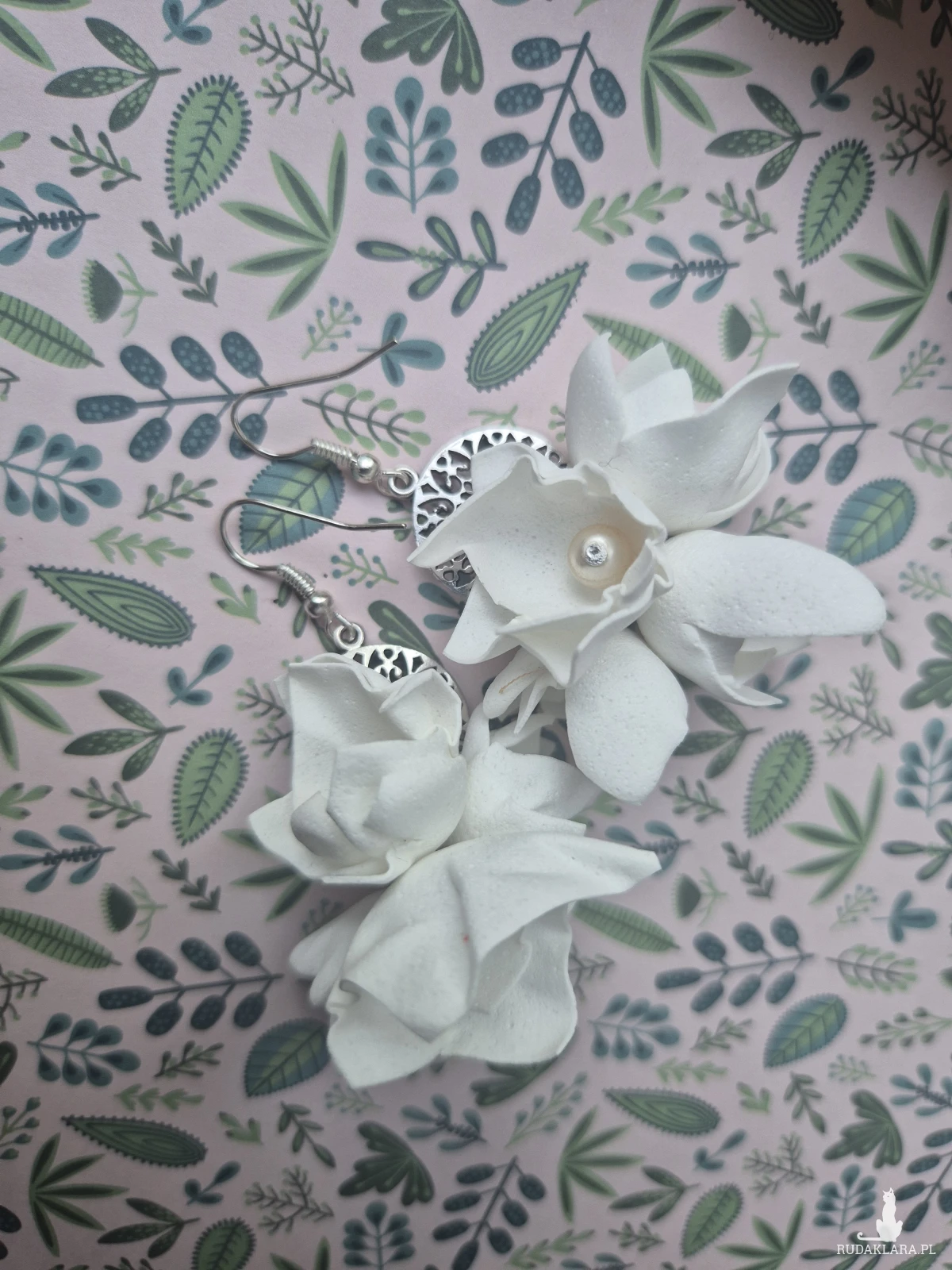 Kolczyki subtelne leciutkie kwiaty slubne polecam