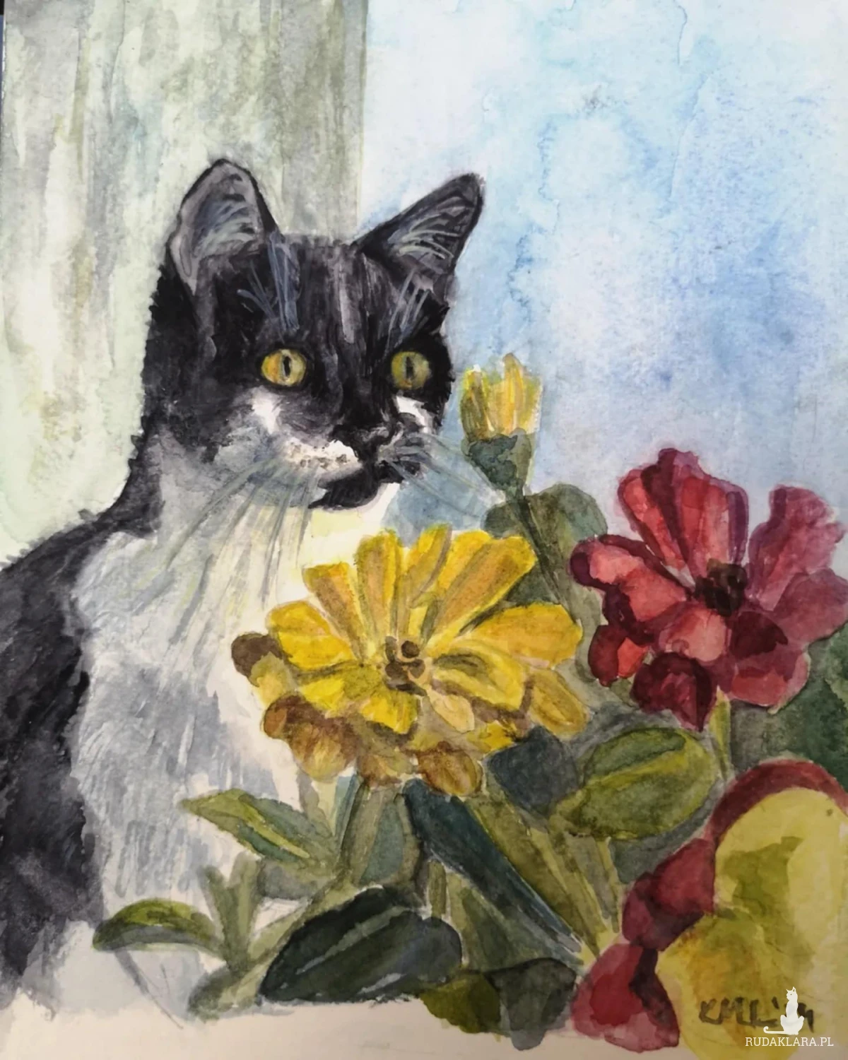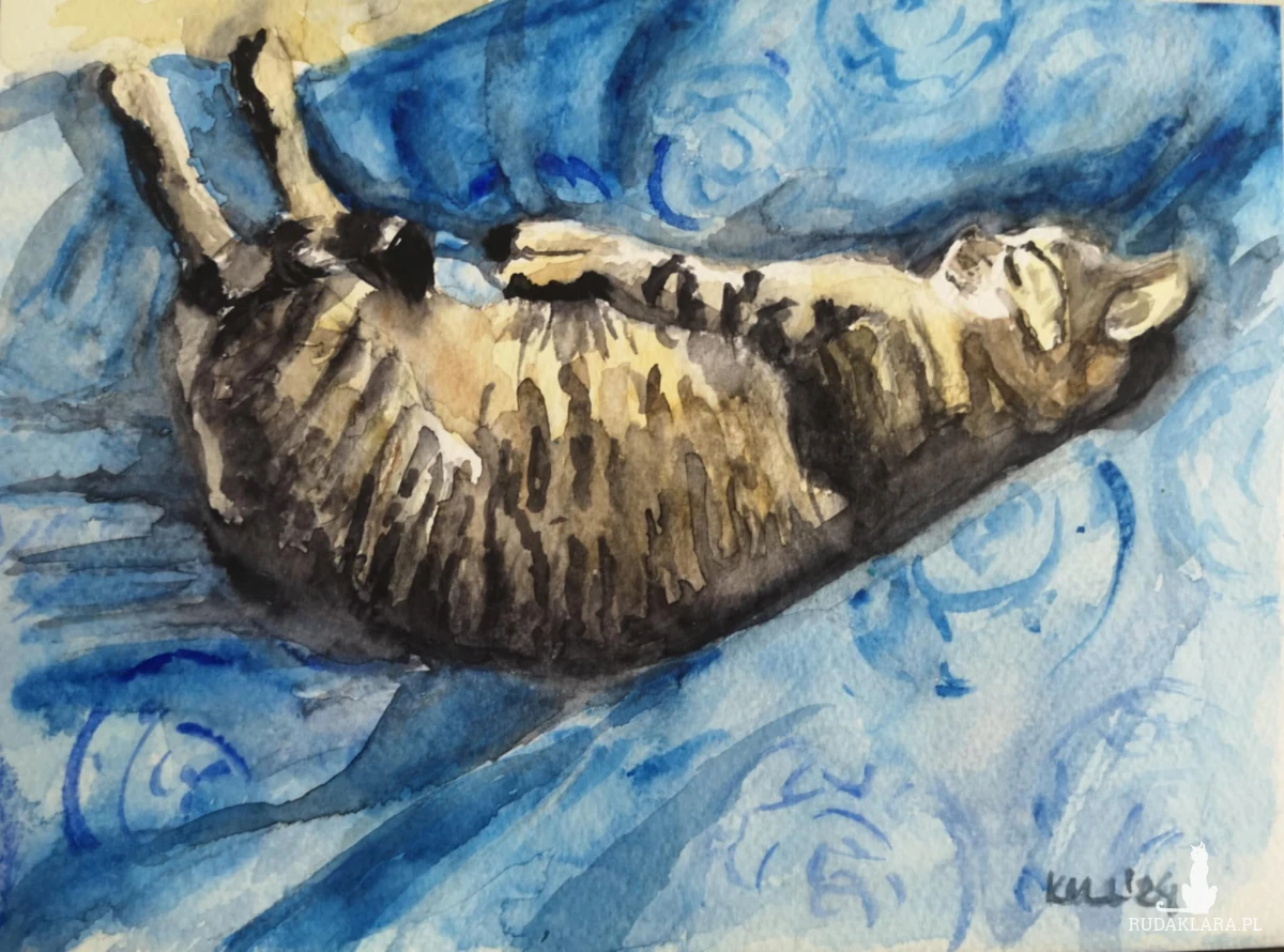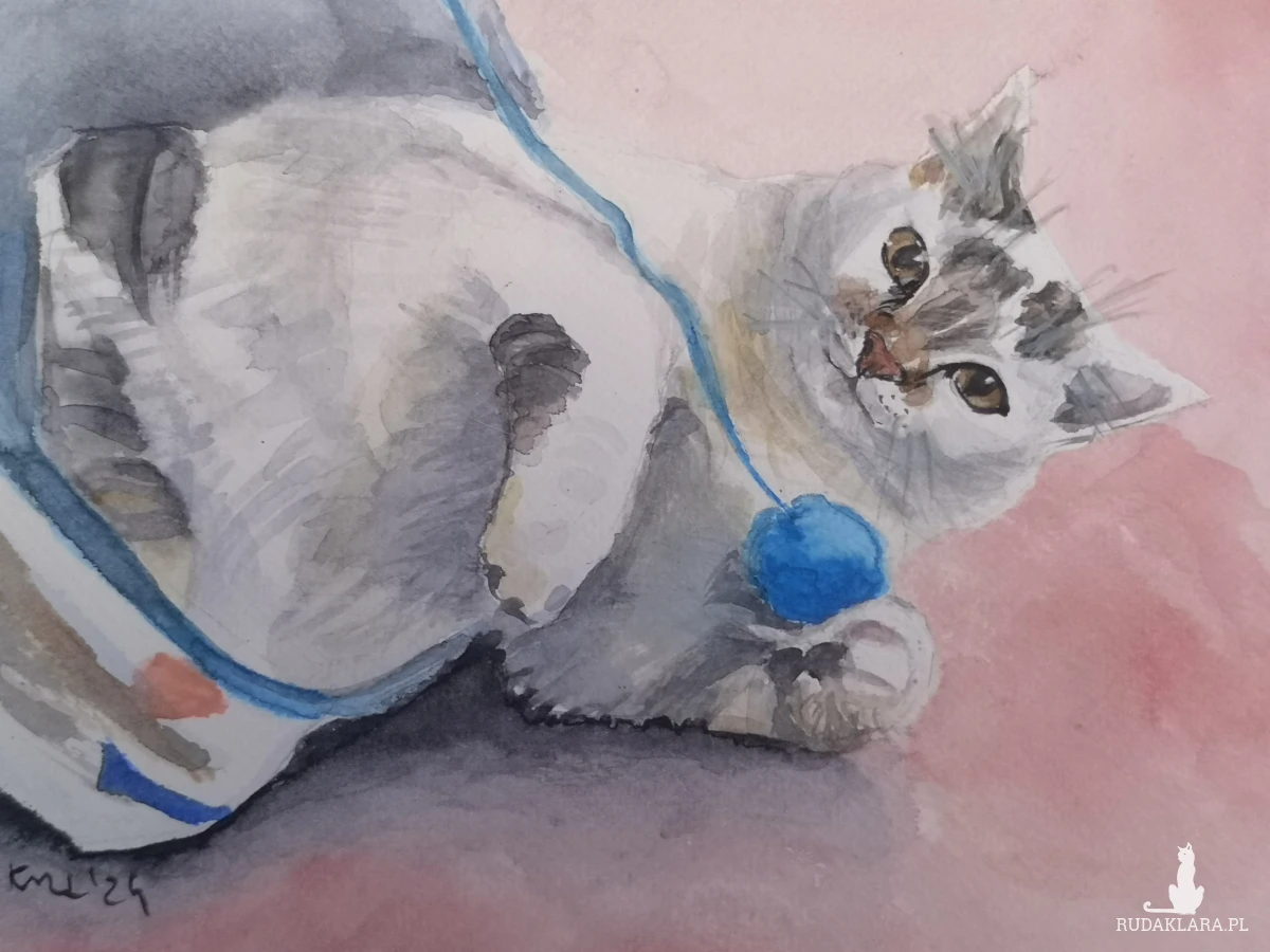 Wykonuję portrety zwierzaków na zamówienie. Maluję na papierze akwarelowym Gamma o gramaturze 200 i 300 farbami firmy Roman Szmal. Ważne jest dla mnie oddanie charakteru zwierzaka, bo uważam, że każdy nasz mały przyjaciel ma swoją niepowtarzalną osobowość. Szczególnie wzruszające jest dla mnie malowanie portretów pamiątkowych zwierząt, które przebywają za Tęczowym Mostem. Wiem jakie ważne są dla zamawiających i obdarowywanych. Sama jestem ludzką mamą dwóch wyjątkowych kotów - Stasi i Józka (mamy i synka), adoptowanych z jednej z krakowskich fundacji. Ich portrety można zobaczyć także w mojej galerii.