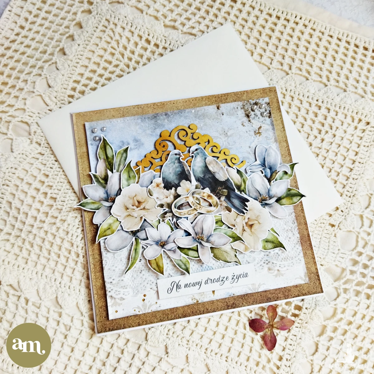 Kartka sprzedawana w zestawie z kopertą w kolorze ecru.