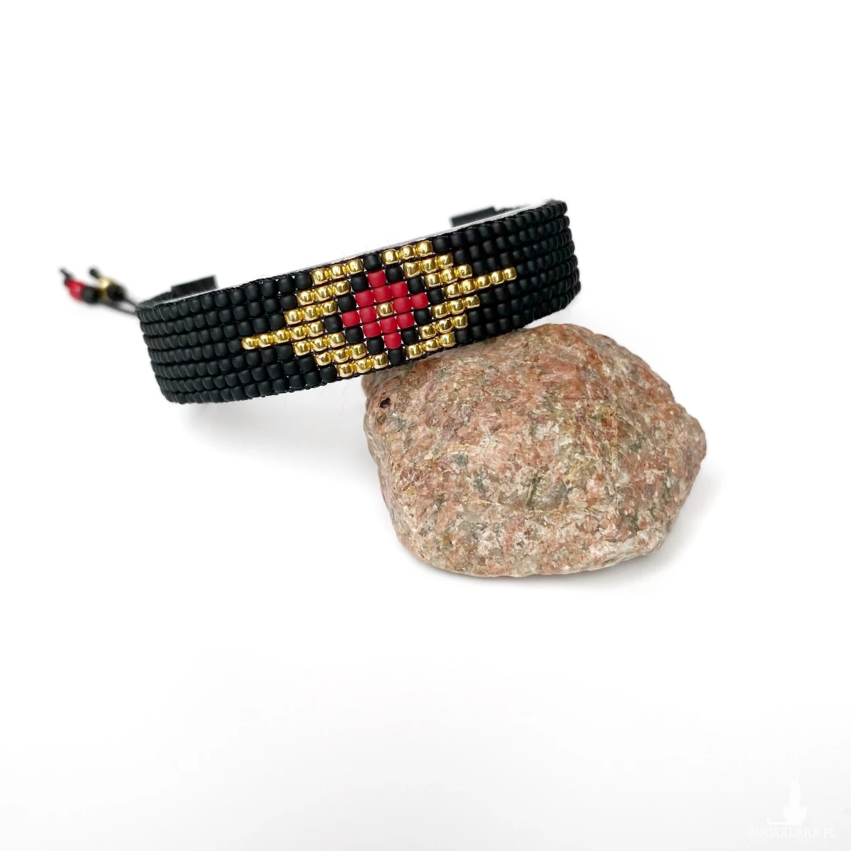 Bransoletka została utkana na krośnie z koralików Toho. Jest bardzo plastyczna i swobodnie układa się na nadgarstku.