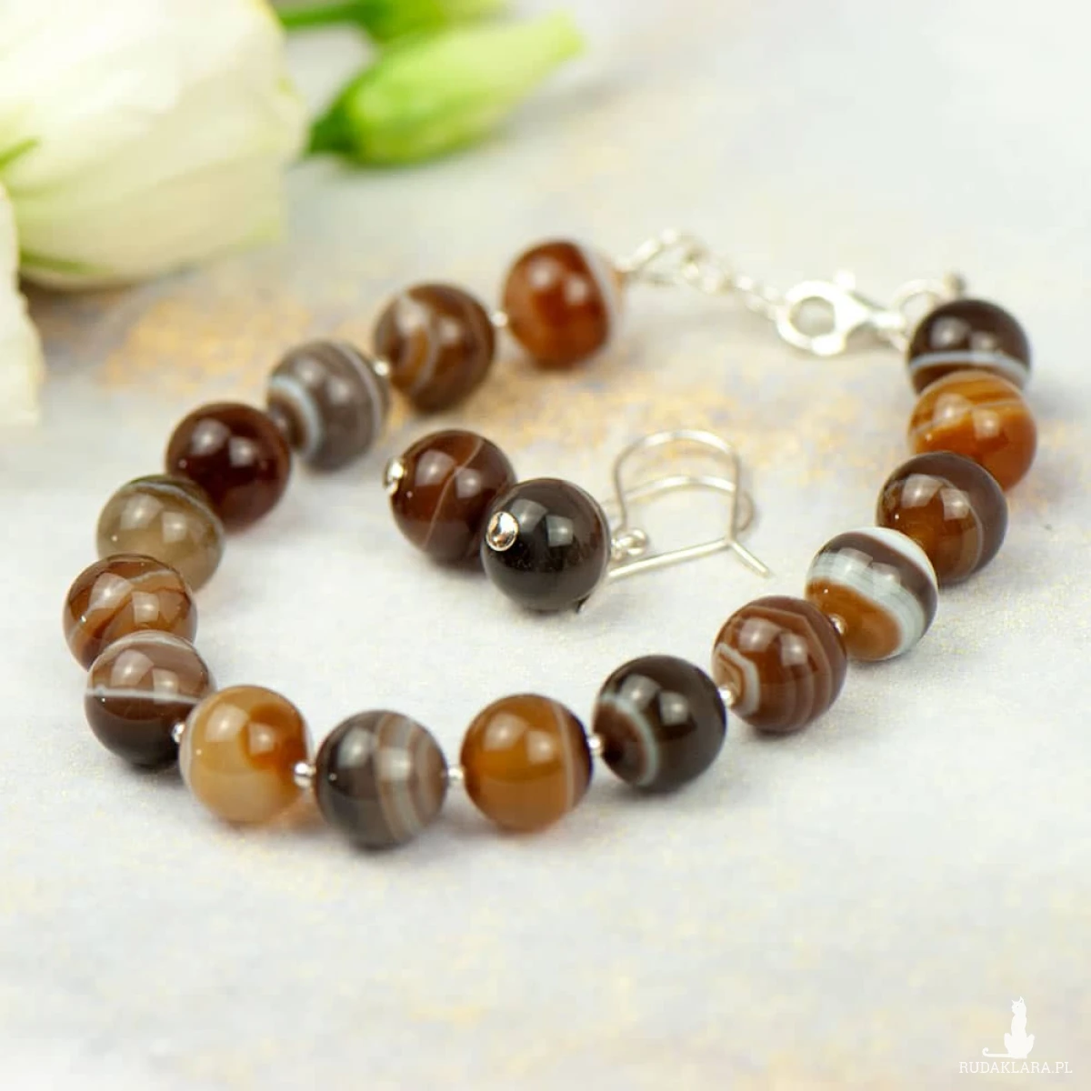 Ten komplet bransoletki i kolczyków to połączenie klasyki z naturalnym urokiem – idealny dla osób, które cenią sobie ponadczasowe dodatki z nutą wyrafinowania. Gładkie agaty osadzone zostały w srebrze próby 925, tworząc harmonijną kompozycję bransoletki i kolczyków. Ciepła barwa kamieni dodaje stylizacjom przytulnego charakteru i doskonale komponuje się zarówno z dziennym strojem biurowym, jak i wieczorową kreacją.